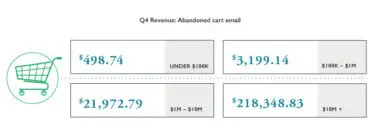 Speaking of abandoned cart emails, let’s look at the overall impact for stores that had them up and running in Q4. Here’s how much revenue the companies we looked at brought in, on average, in Q4 simply from abandoned cart flows.