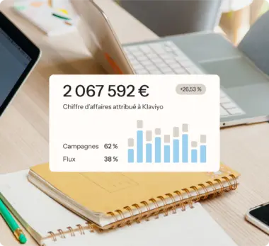 Que vous utilisiez Klaviyo Email, Klaviyo SMS, Klaviyo Mobile Push ou Klaviyo Reviews, Klaviyo Marketing vous offre un reporting de pointe permettant de mesurer les performances et la croissance de vos efforts marketing. Suivez facilement les tendances des abonnés, l’engagement marketing, la délivrabilité et les benchmarks de votre secteur grâce à des tableaux de bord clairs et des rapports personnalisables.