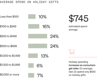 Older consumers are more likely to shop in-store for the holidays and generally plan their shopping throughout the year. Gen Zs are more spontaneous and are most likely to do their shopping the month in which the holiday falls. They’re also likely to spend significantly less on gifts.