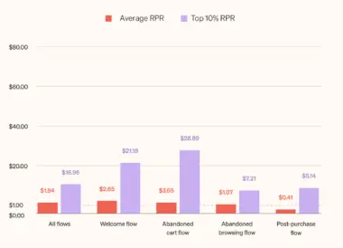Average revenue per recipient (RPR) for SMS campaigns was slightly higher than email based on all ecommerce industries—which represents exciting things for marketers currently leading the way with this relatively new channel.