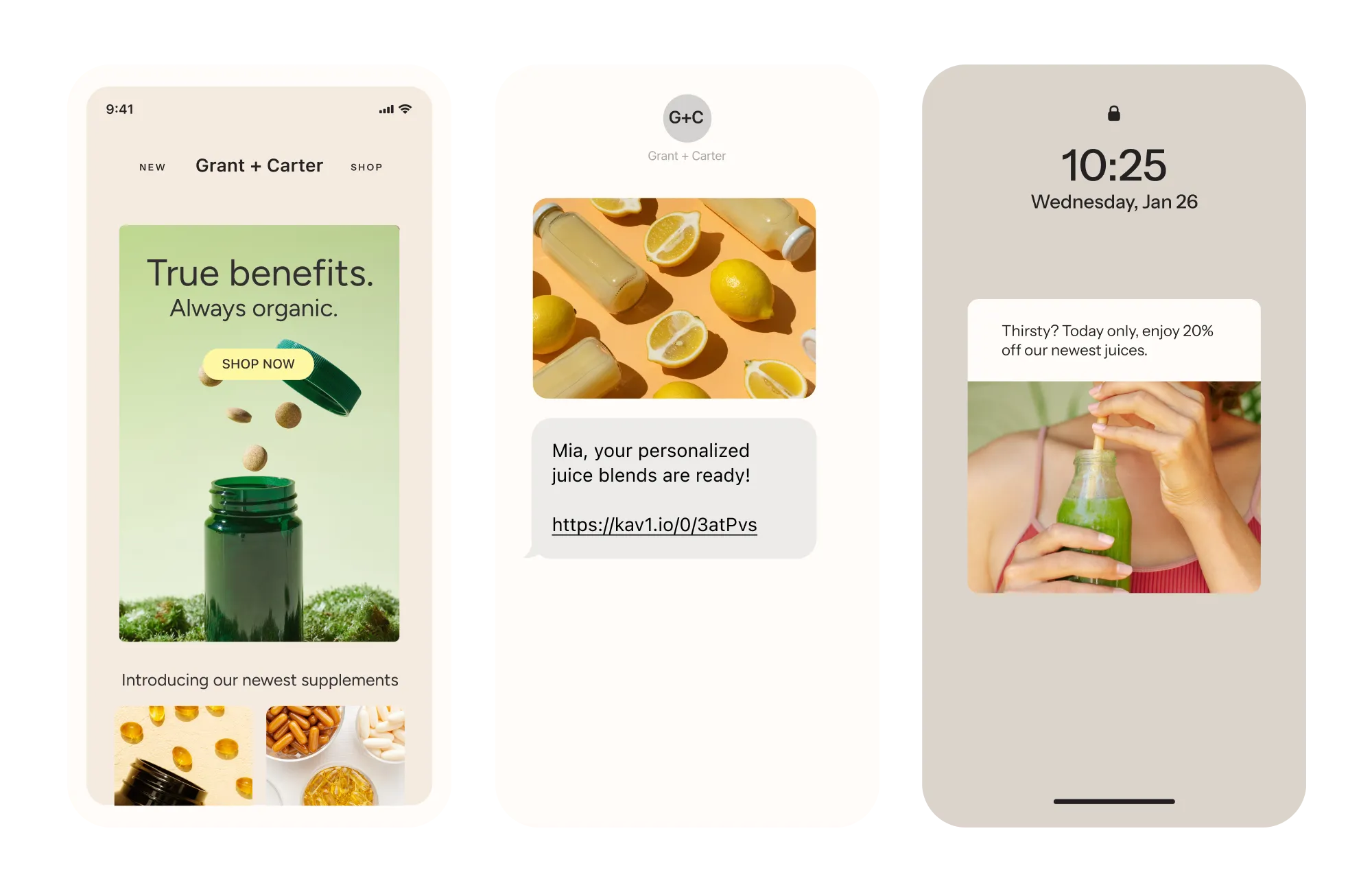 Show customers their new favorite product in their preferred channel—email, SMS, or mobile push—at the right time.