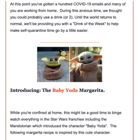 Host Events couldn’t provide its usual service, but it could still offer value to its customers with a recipe to make their own specialty cocktail at home.