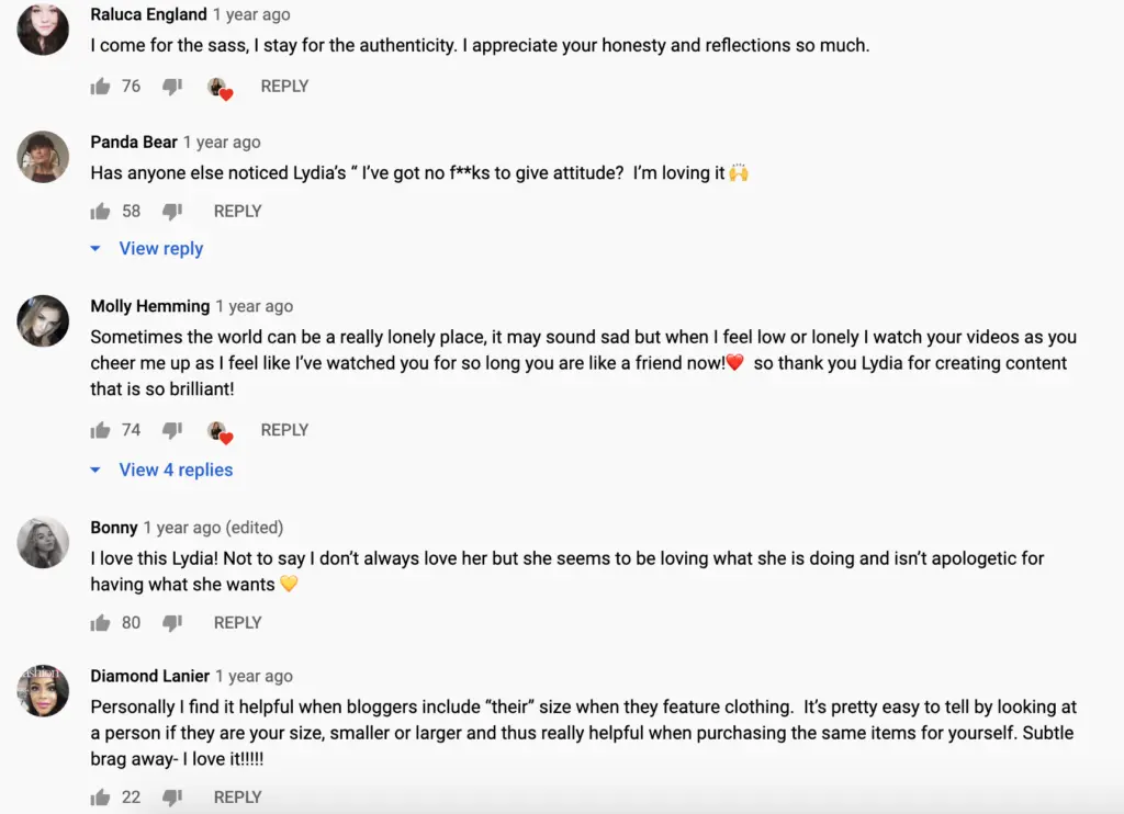 Lydia Elise Millen, a blogger and YouTube creator, shared an unboxing video of her Holland Cooper fashion haul. She has a huge amount of subscribers (over 886,000), but her video also has over 400 comments, like these: