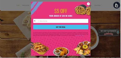 - A financial incentive, like a discount code or a gift craft. Curry Up Now, for example, offers $5 off a purchase of $20 or more to new subscribers to their SMS list.