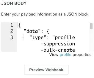 Once you have your webhook configured, you can preview and test the webhook works by clicking the “Preview Webhook” button