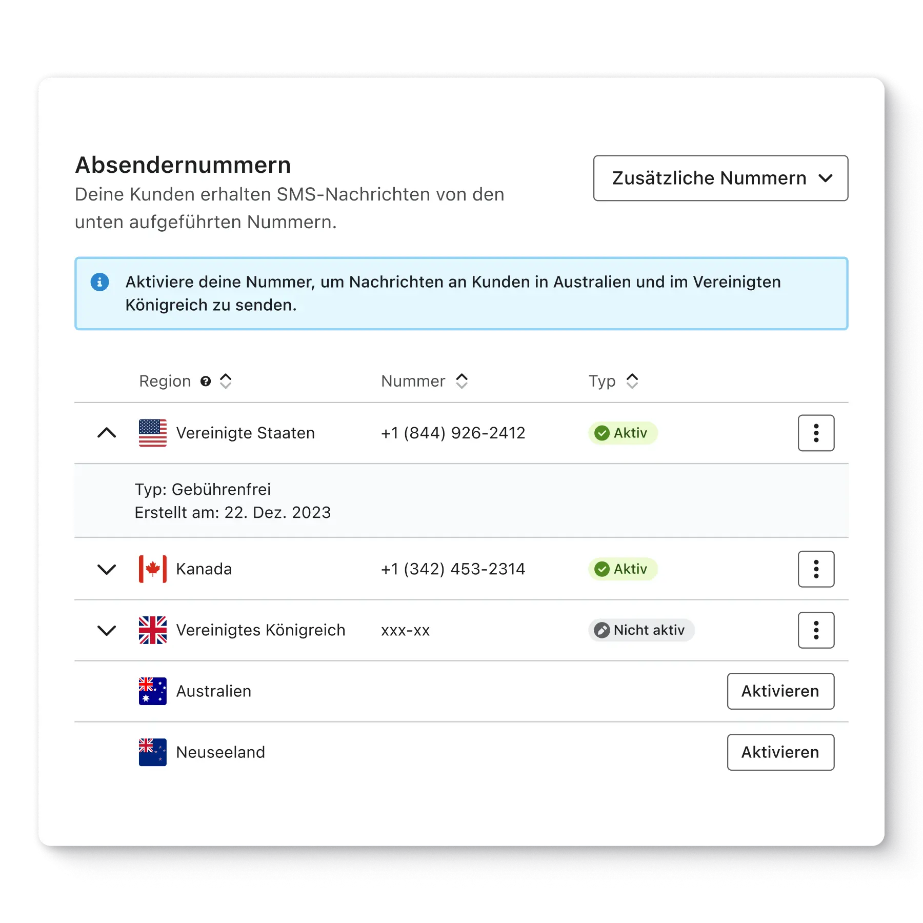 Bevor du deine Kund*innen in SMS-Marketing einwilligen lassen und ihnen Nachrichten senden kannst, musst du SMS in deinem Konto aktivieren und deine Absendernummern einrichten.