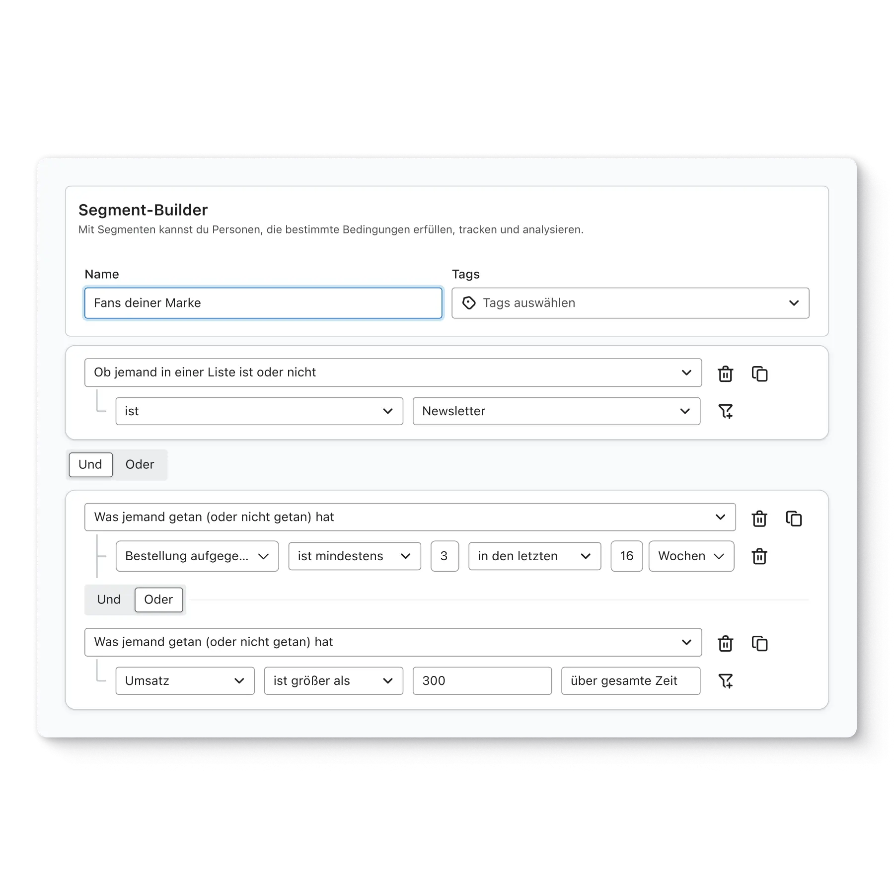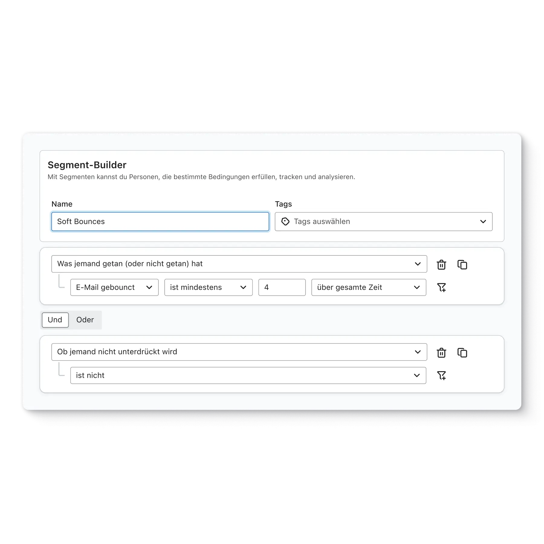 Gruppiere deine Abonnent*innen basierend auf ihren bisherigen Aktionen, um deine Marketing-Kommunikation relevanter und individueller zu gestalten.