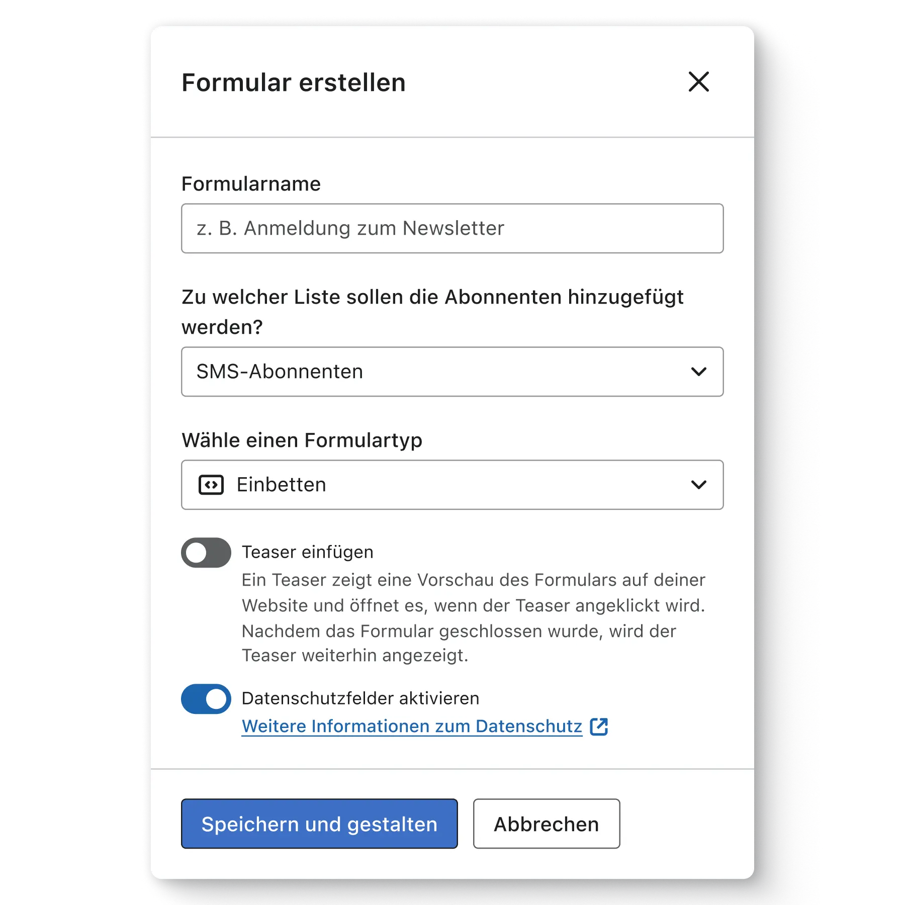 Mithilfe einer vorkonfigurierten Vorlage aus der Formularbibliothek kannst du dein erstes Formular schnell veröffentlichen. Passe das Design an dein Branding an und verkn üpfe das Formular mit deiner Hauptliste. Stelle das Formularverhalten so ein, dass es eingeblendet wird, wenn jemand deine Seite verlassen möchte.