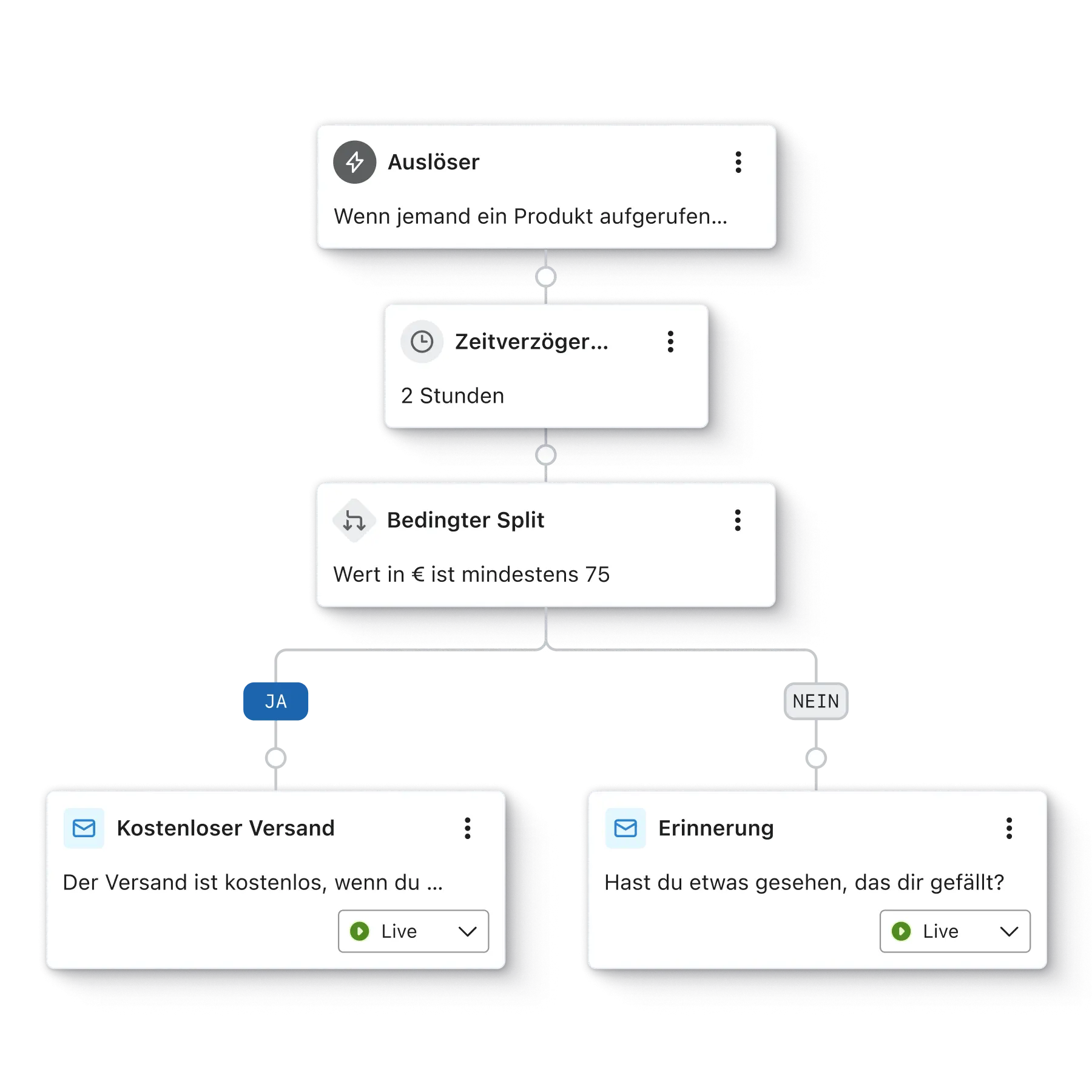 Flows sind automatisierte Nachrichten, die durch die Aktionen von Abonnent*innen ausgelöst werden. Diese hochrelevanten und zielgerichteten Nachrichten können einen bis zu 30-mal höheren Umsatz pro Empfänger*in generieren als Kampagnen.