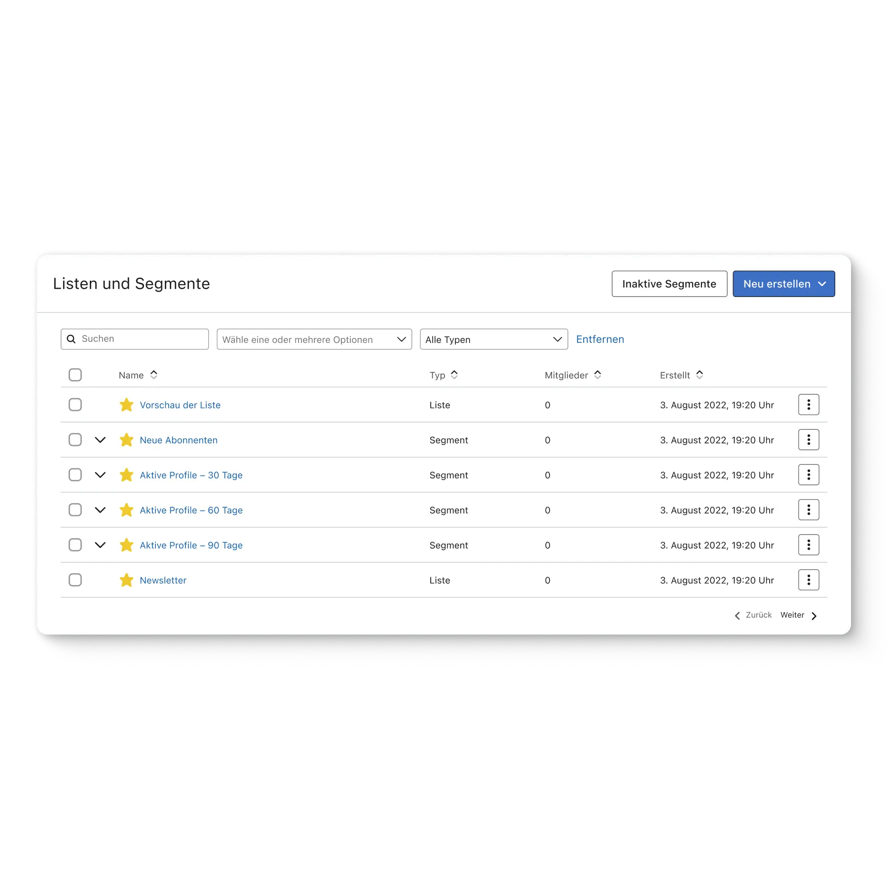 Wenn du gerade erst mit E-Mail-Marketing beginnst und noch keine Abonnentenliste hast, kannst du diesen Schritt überspringen.