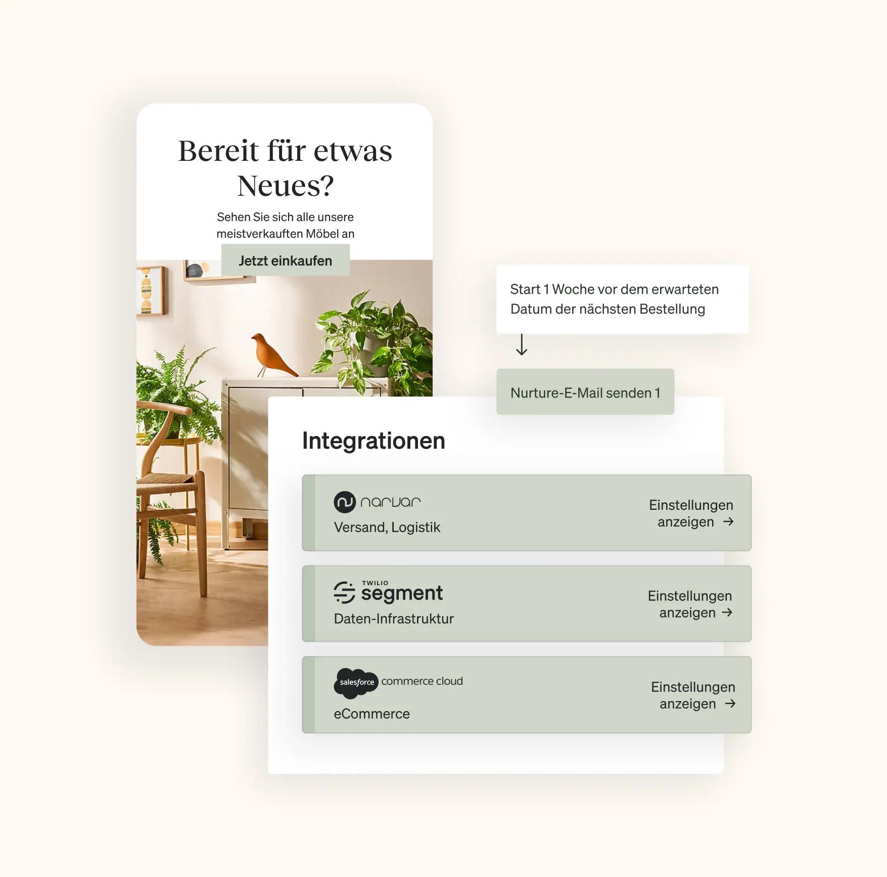 Investiere deine Zeit in die Entwicklung ansprechender Marketing-Erlebnisse statt in die Verwaltung eines Integrationsprojekts. Mit Klaviyo hast du Zugriff auf mehr Kundendaten als je zuvor – Daten, die auf dem Verhalten und den Vorlieben der Kund*innen basieren und damit den Grundstein für wertvolle Beziehungen legen. Die API-Integration mit Salesforce Commerce Cloud ist innerhalb von Minuten eingerichtet und synchronisiert große Mengen an Kundendaten. Damit sind die Wachstumsmöglichkeiten geradezu endlos.