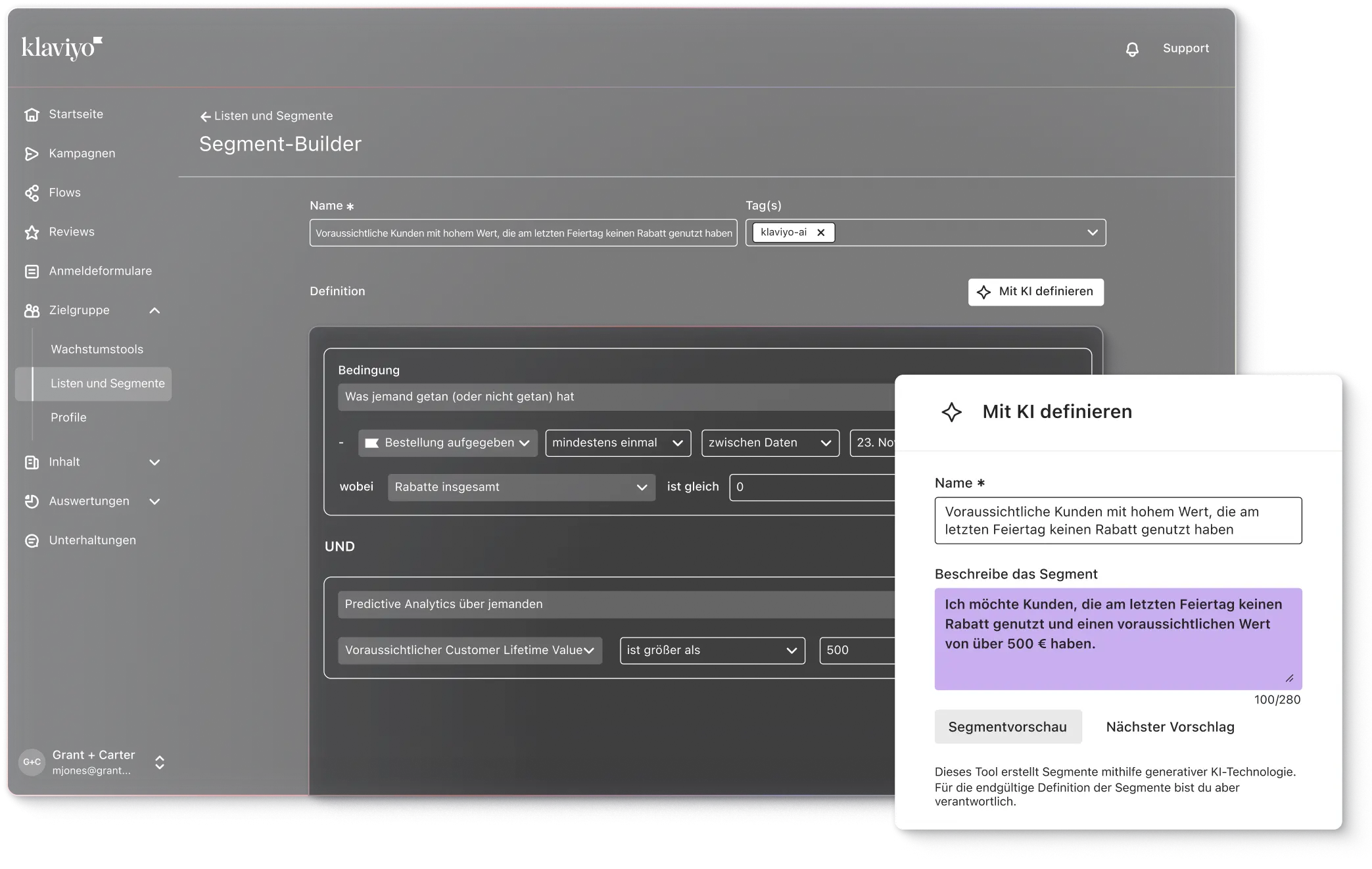 Noch besser: Lasse Klaviyo AI Kundensegmente für dich erstellen.