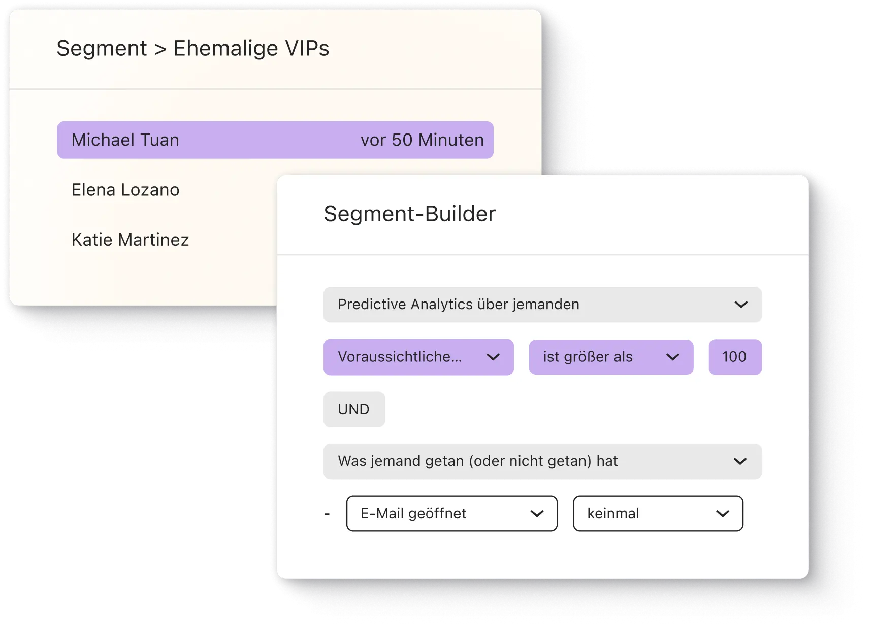 Segmente werden in Echtzeit aktualisiert, sodass du immer die richtige Zielgruppe ansprichst. Außerdem kannst du zeitlich unbegrenzte Daten nutzen, um Segmente zu erstellen.