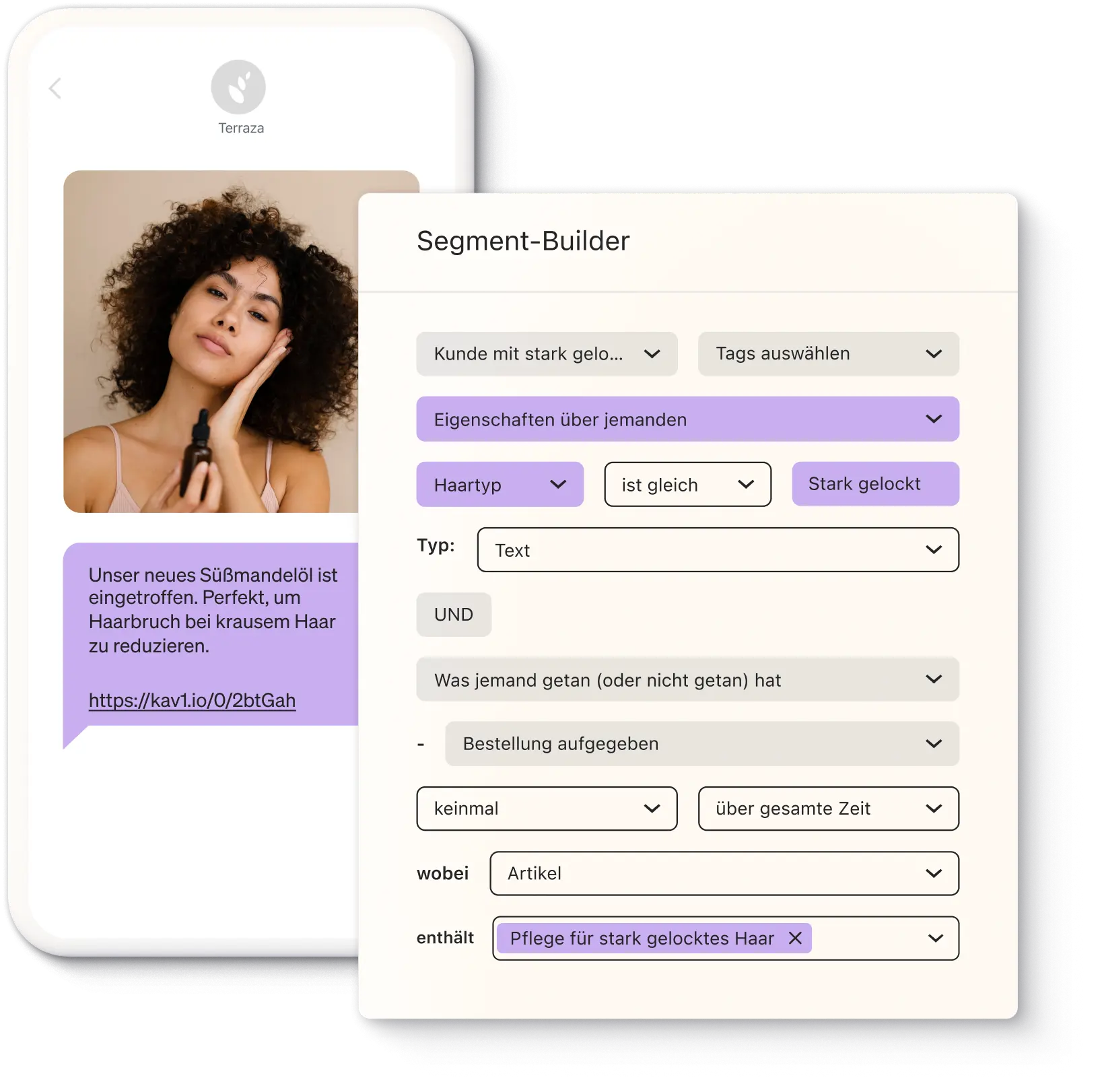 Bei der Segmentierung mit Klaviyo kannst du einfach Verbindungen herstellen und deine Performance für E-Mail, SMS, Mobile Push und mehr messen.