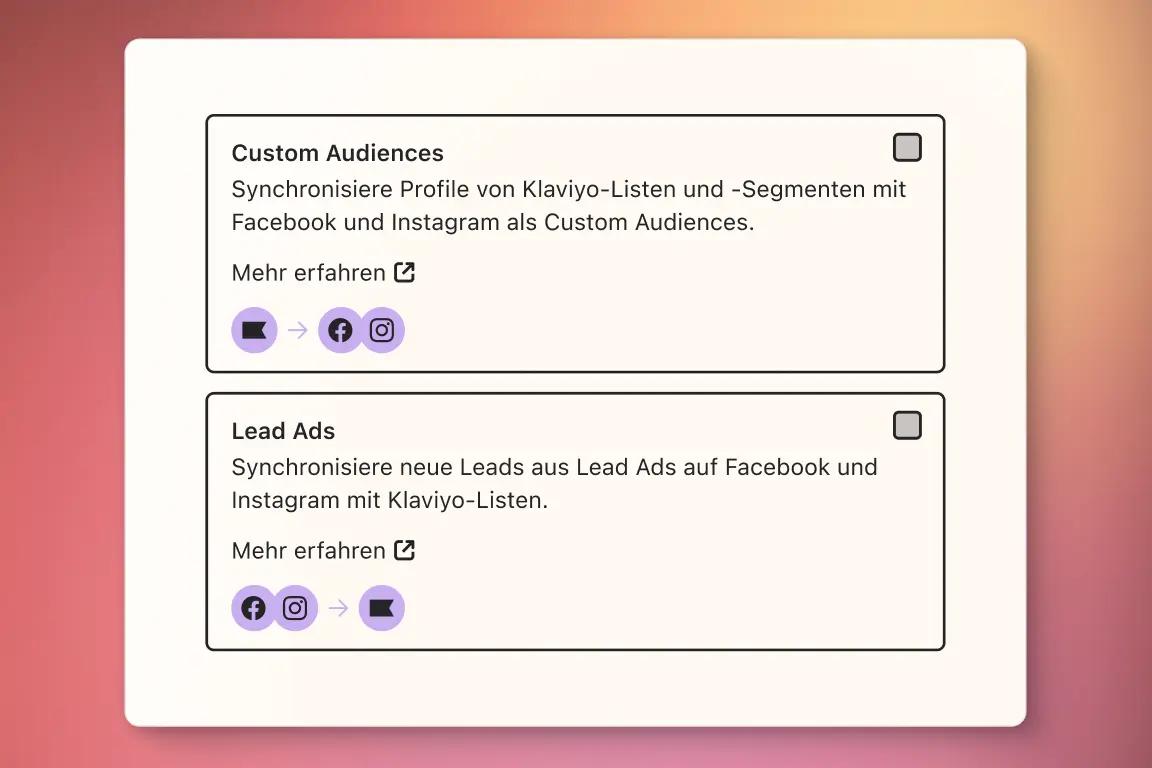 Verbinde Klaviyo mit allen bevorzugten Plattformen, um datengesteuerte Anzeigen zu erstellen.