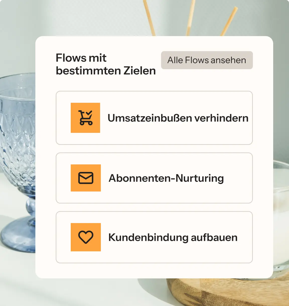 Steigere deinen Umsatz mit über 60 vorkonfigurierten Flows und mehr als 150 E-Mail-Vorlagen für Einmalkampagnen, Warenkorbabbruch- und Welcome-Flows sowie kanalübergreifende Automatisierungen.