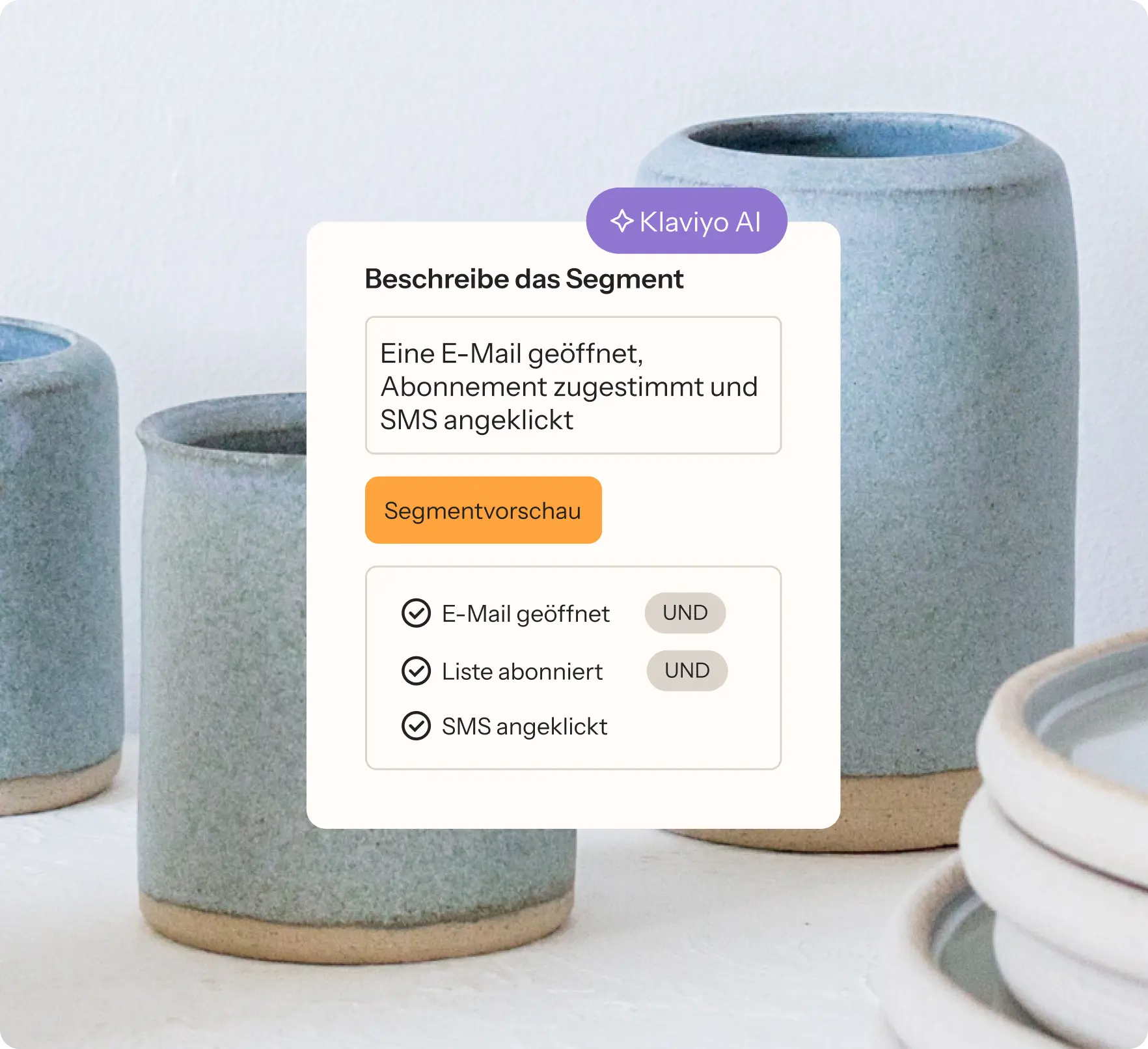 - Klaviyo AI konfiguriert sofort komplexe Segmente und Flows und erstellt innerhalb von Sekunden personalisierte Nachrichten.