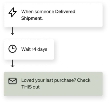 Cross-Selling-Flows sind eine großartige Möglichkeit, Abonnent*innen ausgehend von ihren bisherigen Käufen weitere Produkte zu empfehlen, die ihnen gefallen könnten. Wichtig ist, den Kund*innen ausreichend Zeit zugeben, das gerade gekaufte Produkt auch zu verwenden, bevor du weitere Produkte vorschlägst.