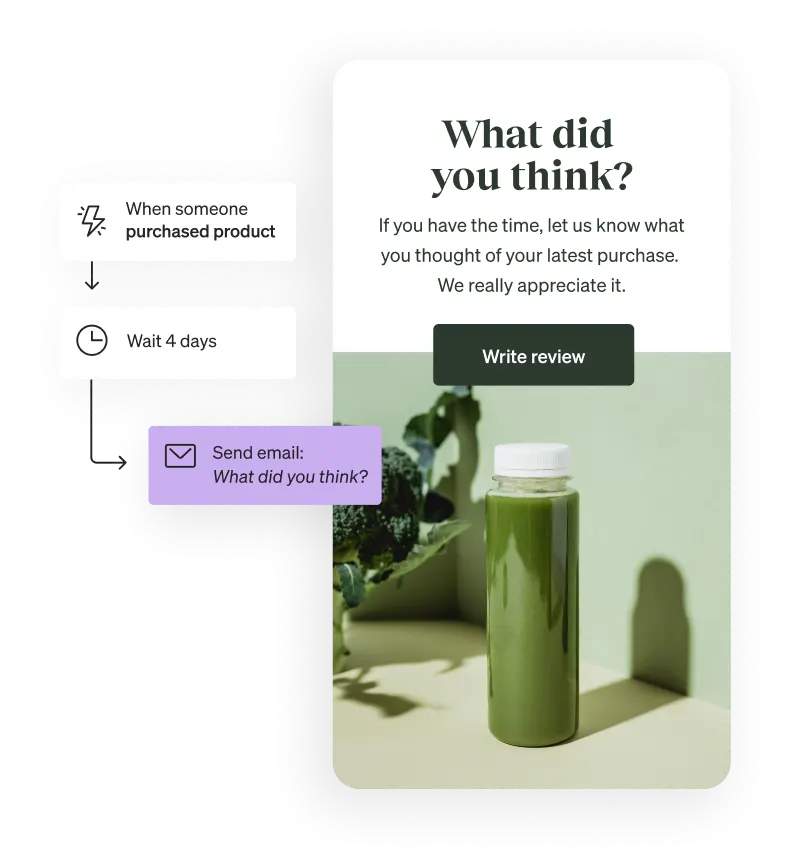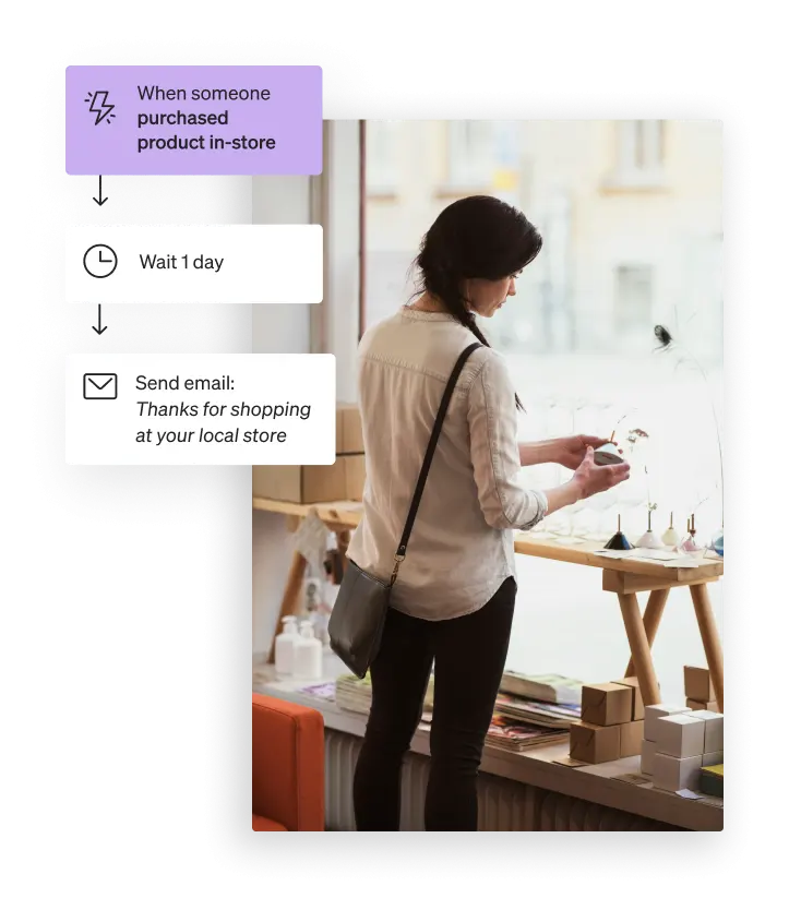 For example, say a customer buys an item from you in person. Connect with them in a few days using an automated review request email (or SMS). If they complete a review, nurture loyalty by sending a thank you discount.