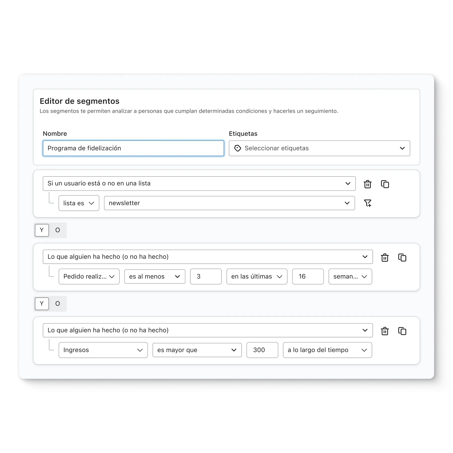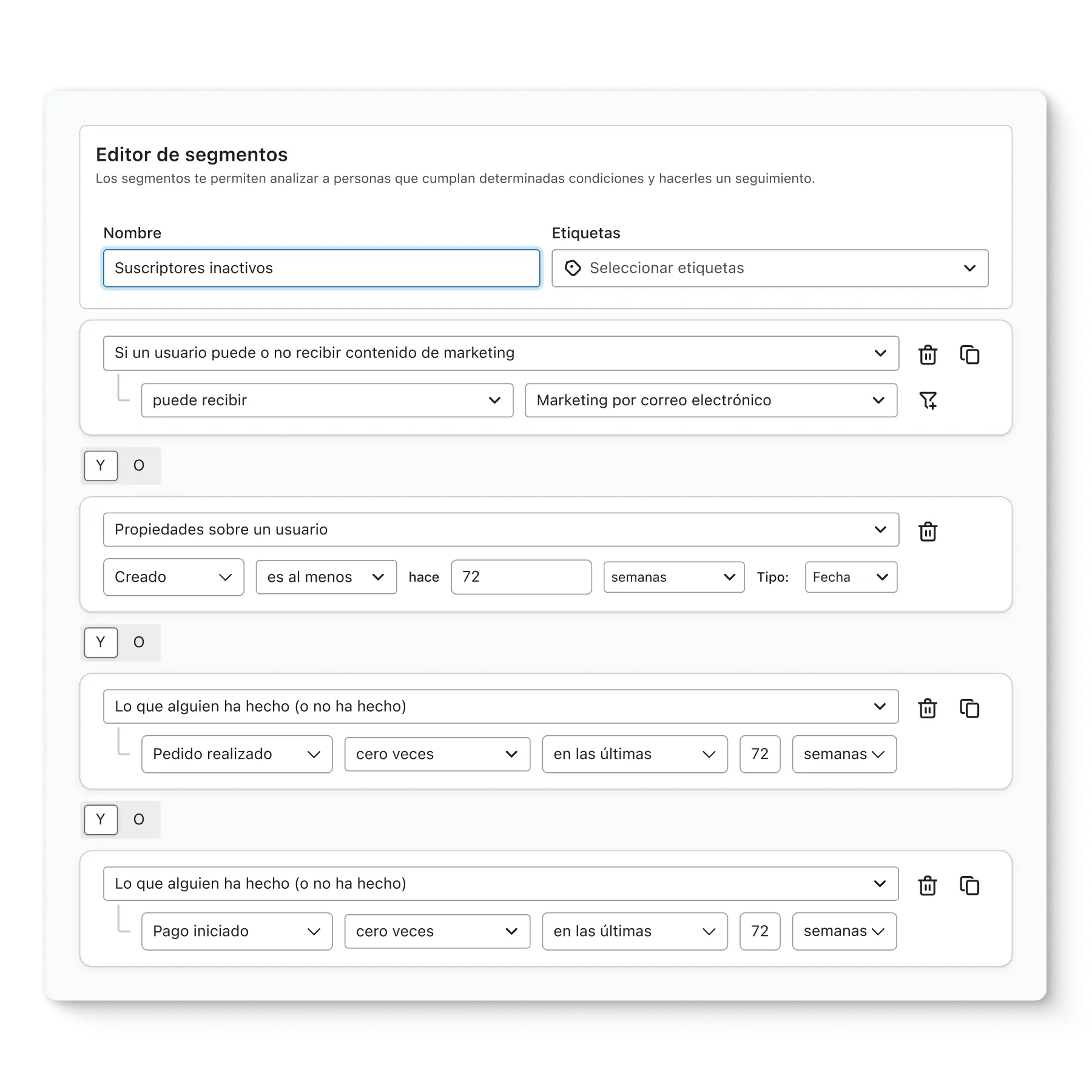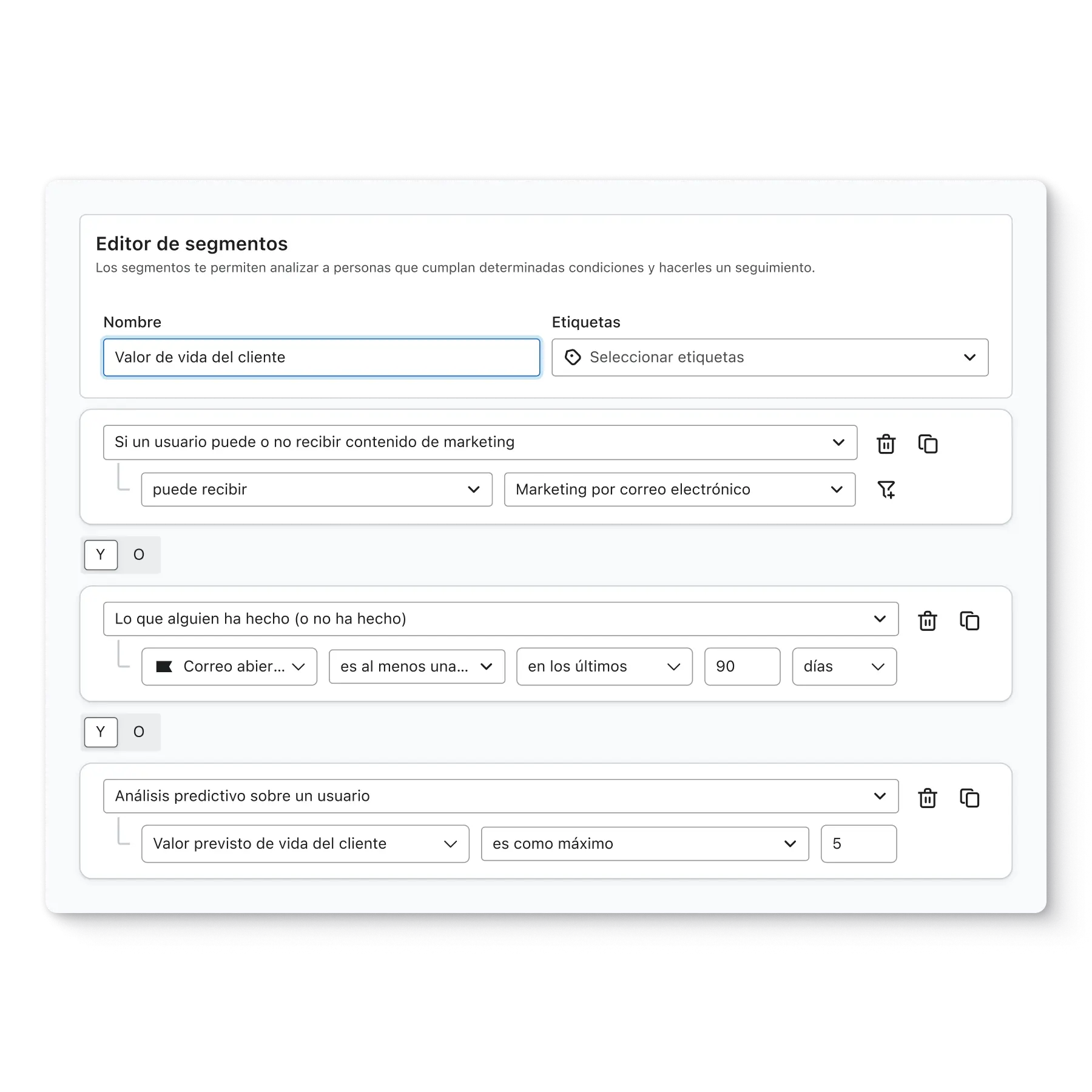 Utiliza los datos que has recopilado y almacenado para crear segmentos que puedan usarse con la finalidad de orientar campañas, formularios, flujos, etc.
