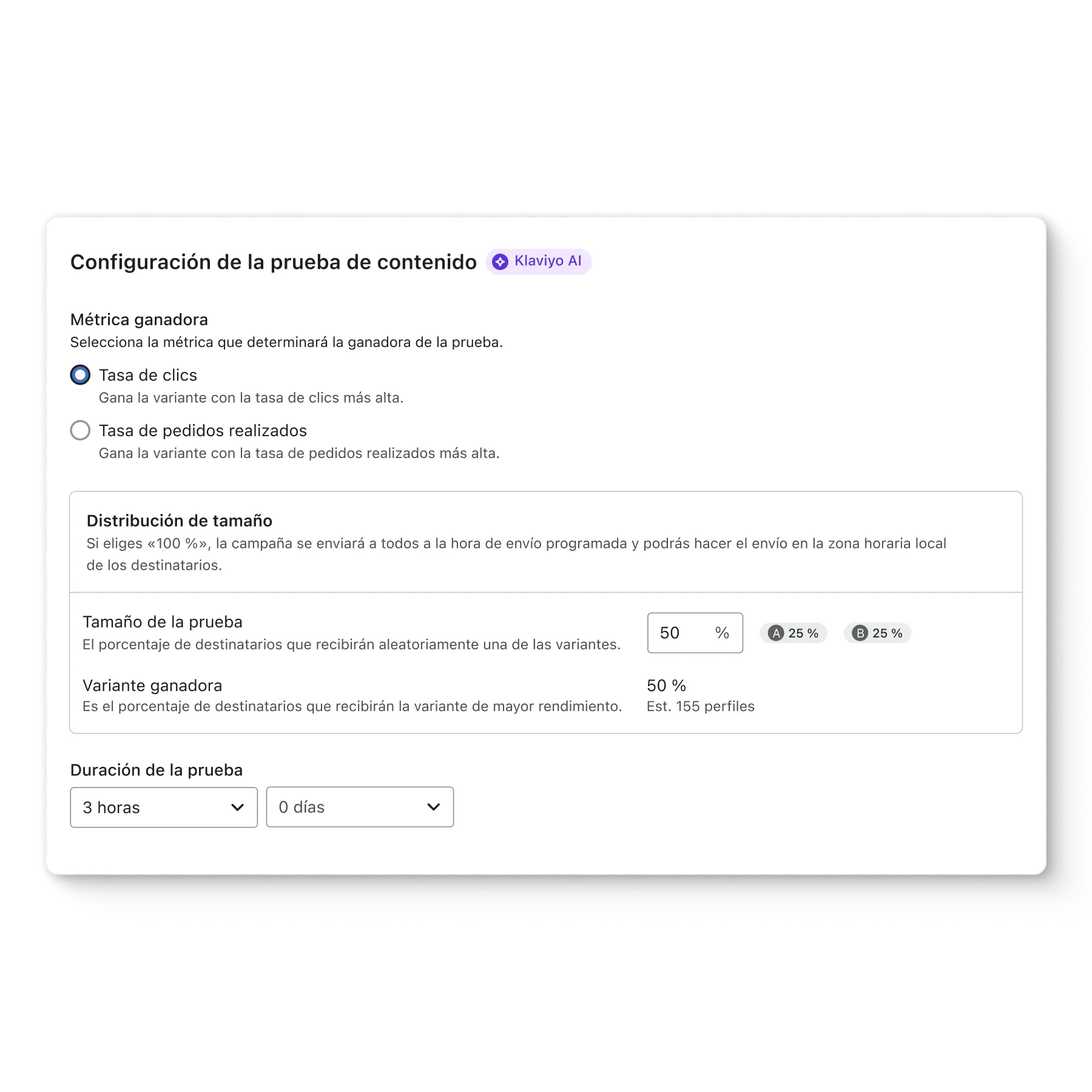 Aumenta las tasas de apertura, clics y conversión de las campañas mediante la experimentación y las pruebas.