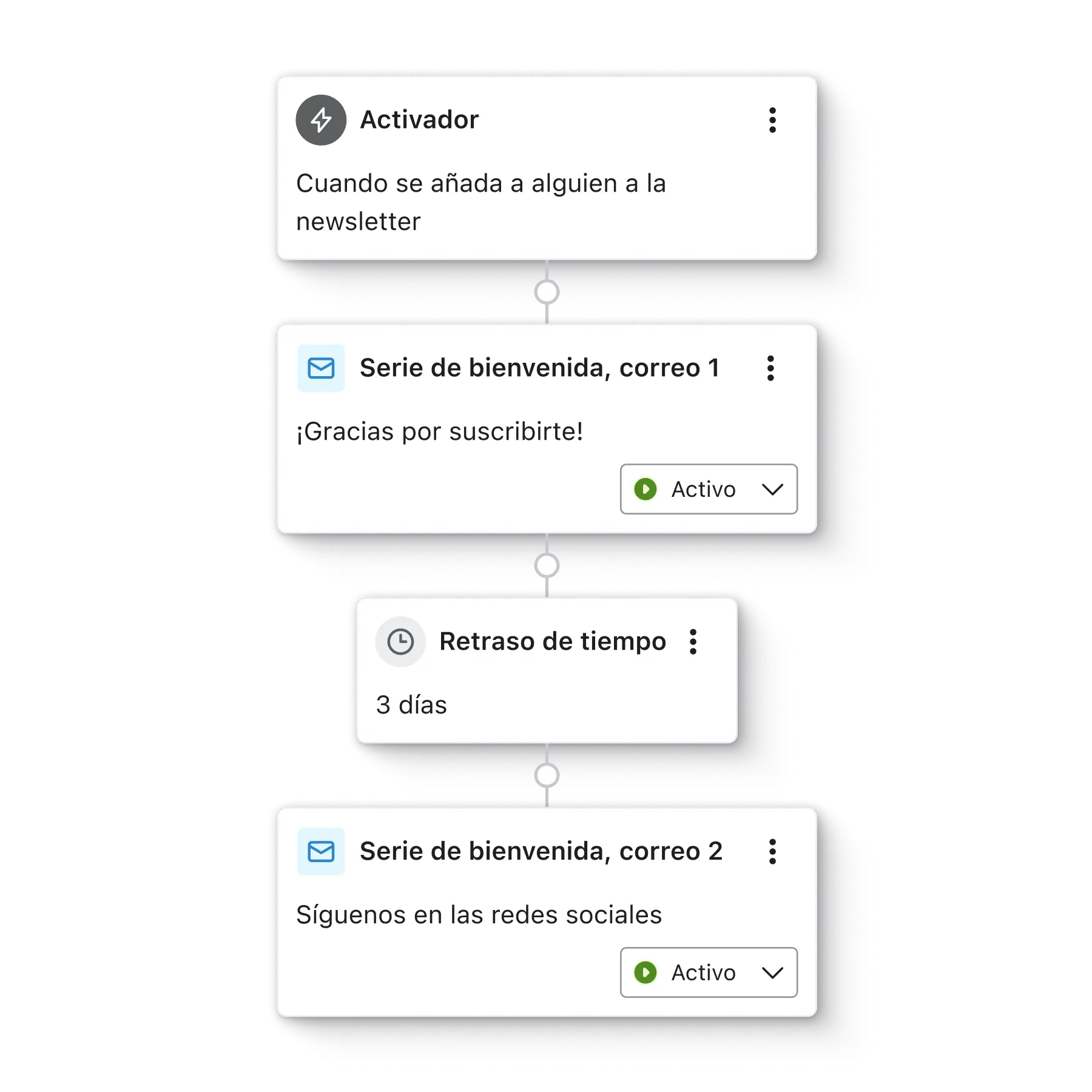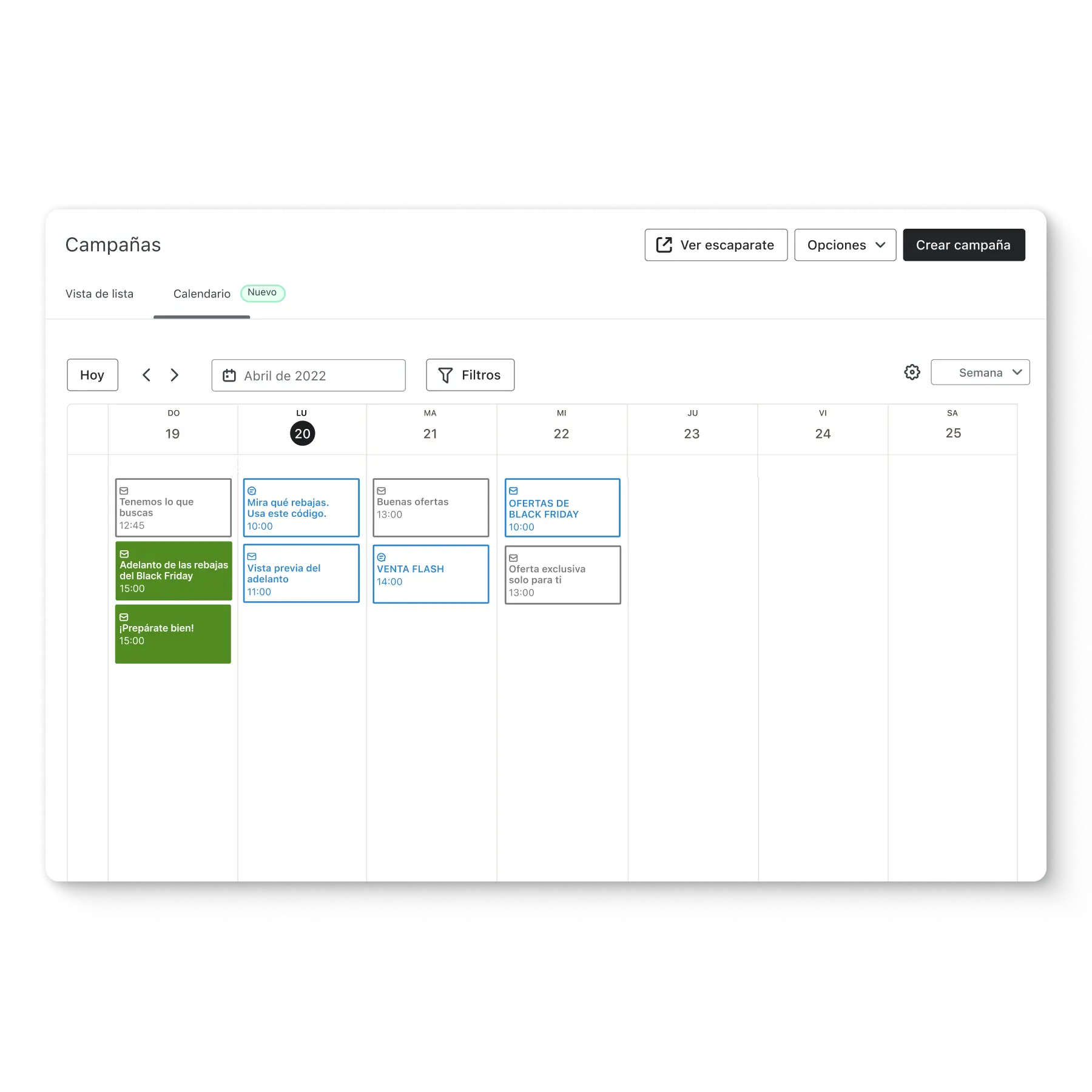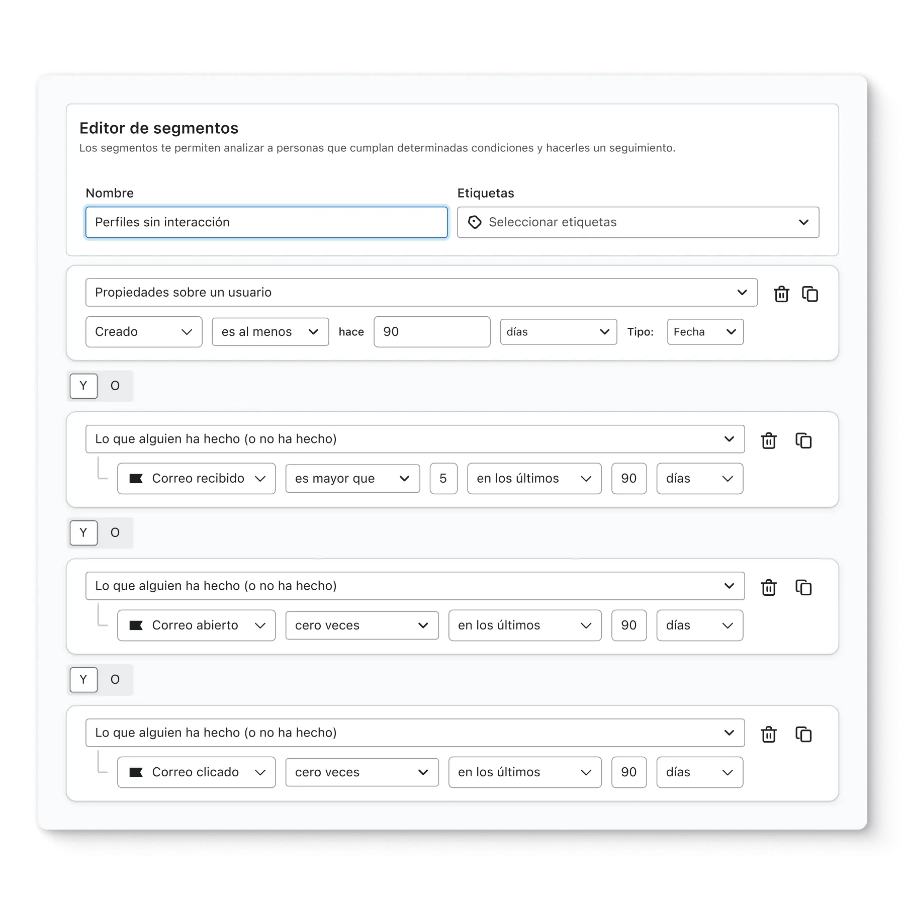 Los proveedores de correo electrónico supervisan activamente la frecuencia con la que los destinatarios interactúan con tus mensajes, y tú también deberías hacerlo. Aumenta la eficiencia de cada envío manteniendo una lista de suscriptores activos y con interacción.
