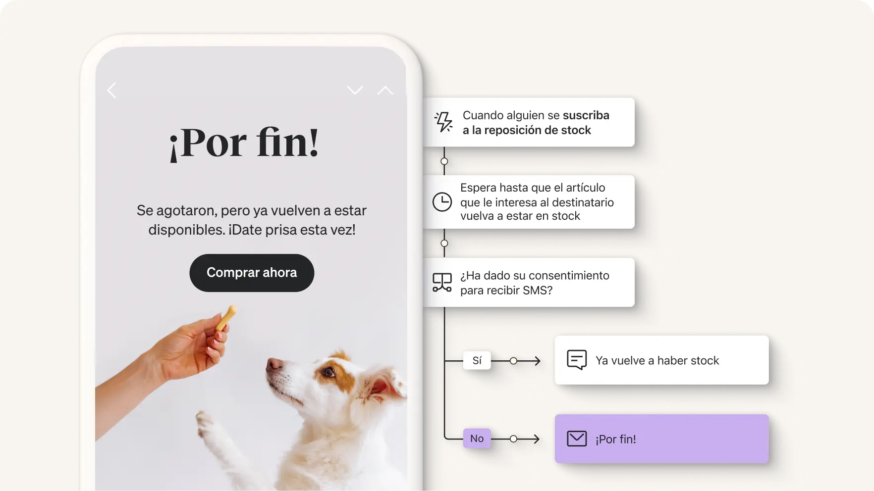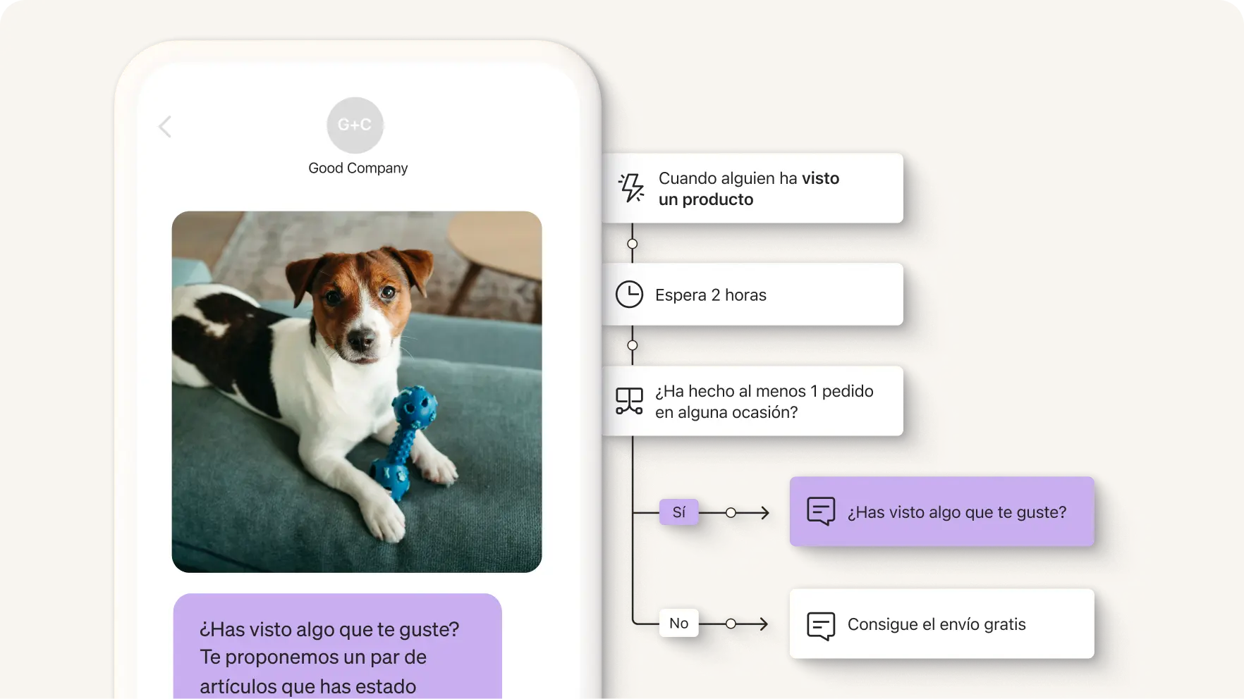Da la bienvenida a los nuevos suscriptores de tu lista con un flujo de correo electrónico o de SMS que fomente la interacción. Recompénsalos por registrarse y ayúdales a conocer mejor la marca.