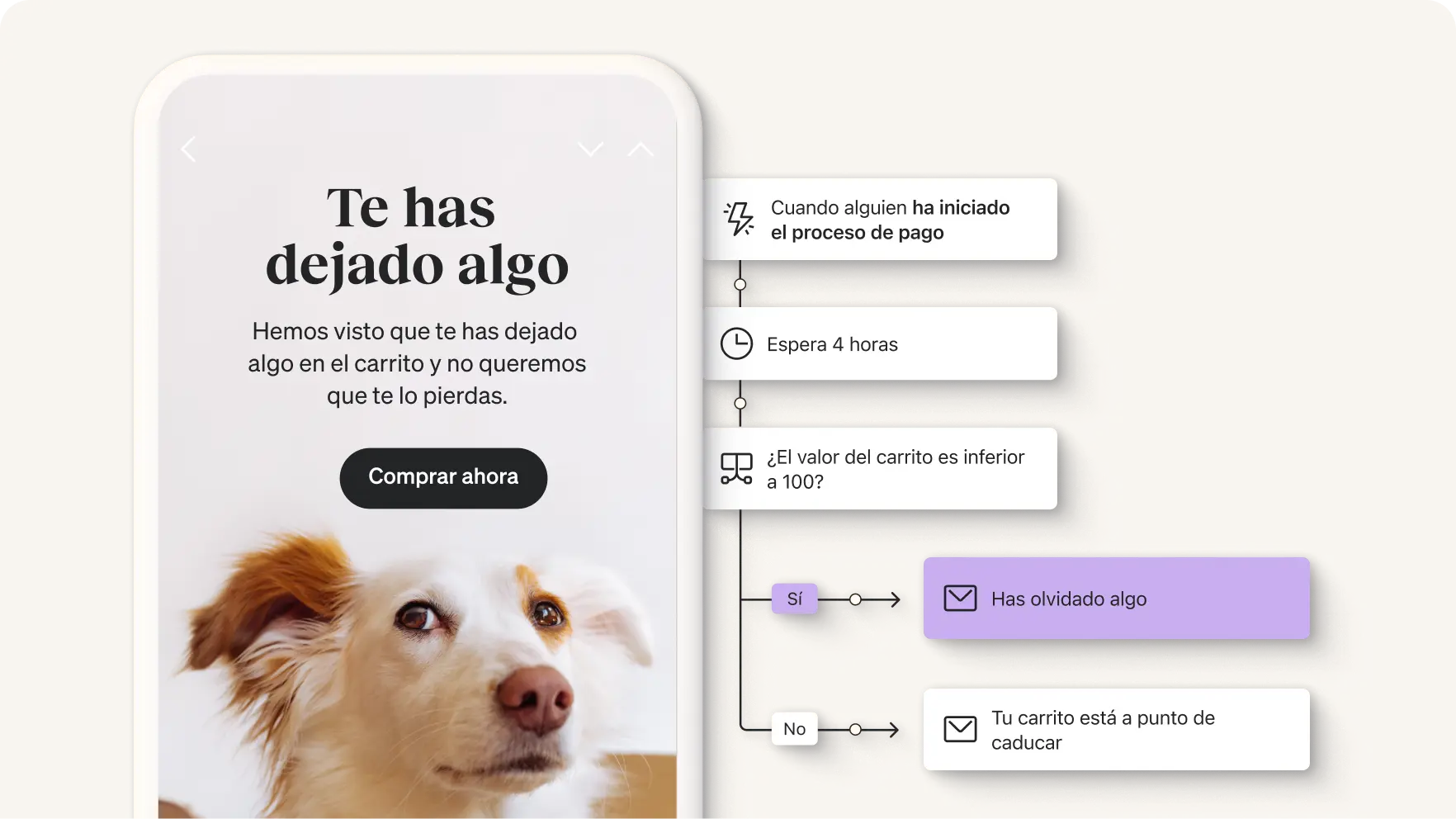 Envía un aviso a los suscriptores cuando se dejen un producto en el carrito para que completen la compra, lo que hará que generes más ingresos.