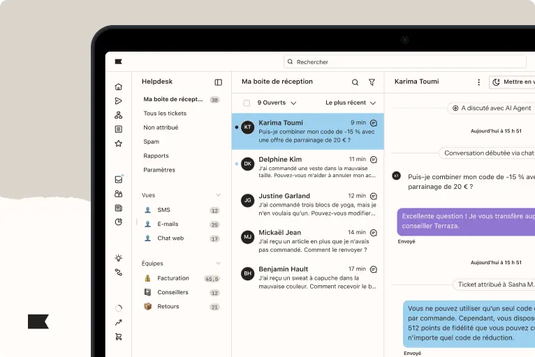 Ces conversations bidirectionnelles stimulent la conversion et prolongent vos campagnes marketing en interactions directes et omnicanales—par SMS, web, e-mail (bêta), et bientôt WhatsApp.
