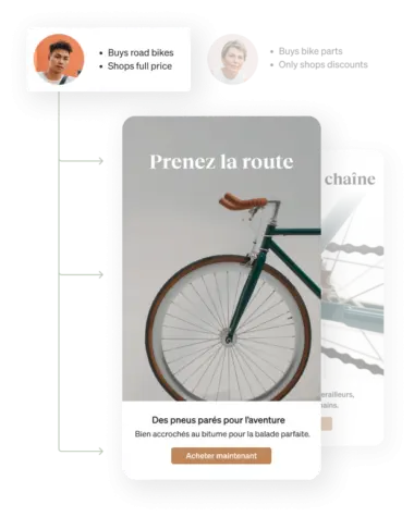 Assurez l’hyper-personnalisation via des flux déclencheurs reposant sur des dates, événements, comportements, etc. Utilisez ensuite les segments, les filtres, les tests A/B et plus de fonctionnalités encore pour cibler et optimiser.