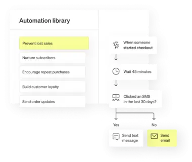 Des dizaines de flux essentiels sont prêts à l’emploi. Entièrement personnalisables, ils sont adaptés à n’importe quelle stratégie d’e-mails et de SMS. Vous pouvez utiliser ces automatisations préconçues, et d’autres encore, pour créer un parcours client fluide :