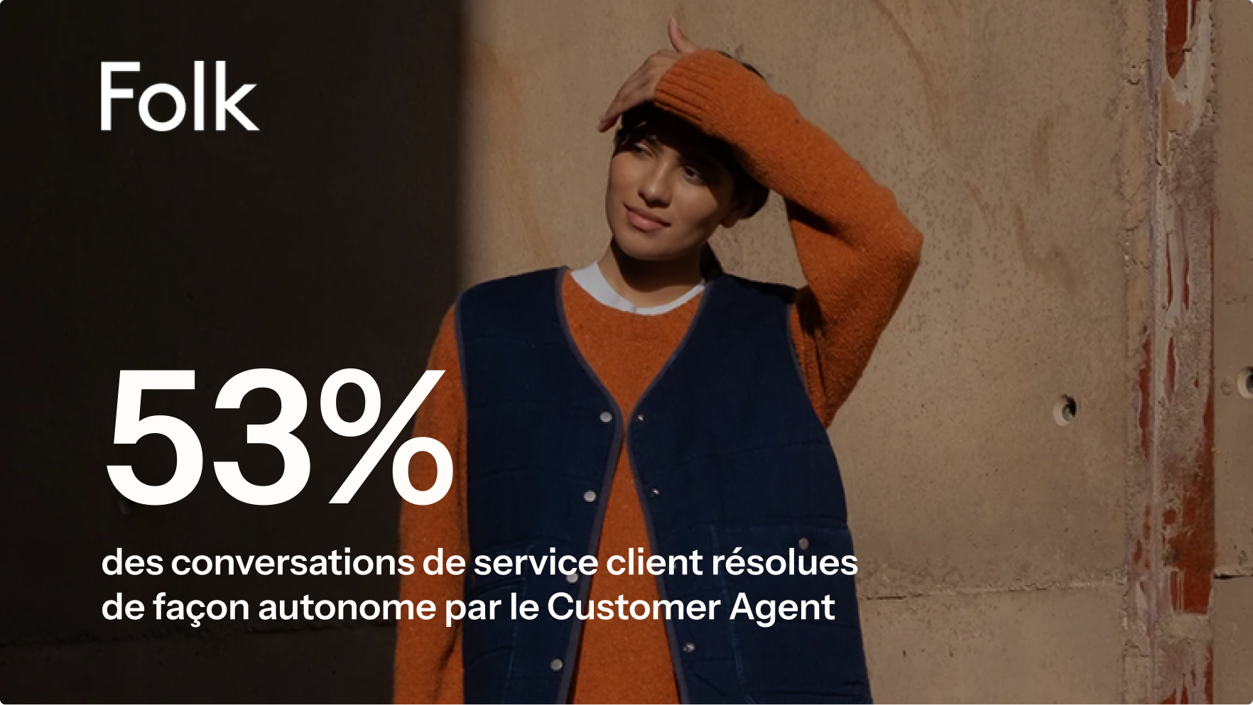 Politiques, délais de livraison, guides des tailles : les réponses s’appuient sur votre contenu d’assistance, quel que soit le volume.