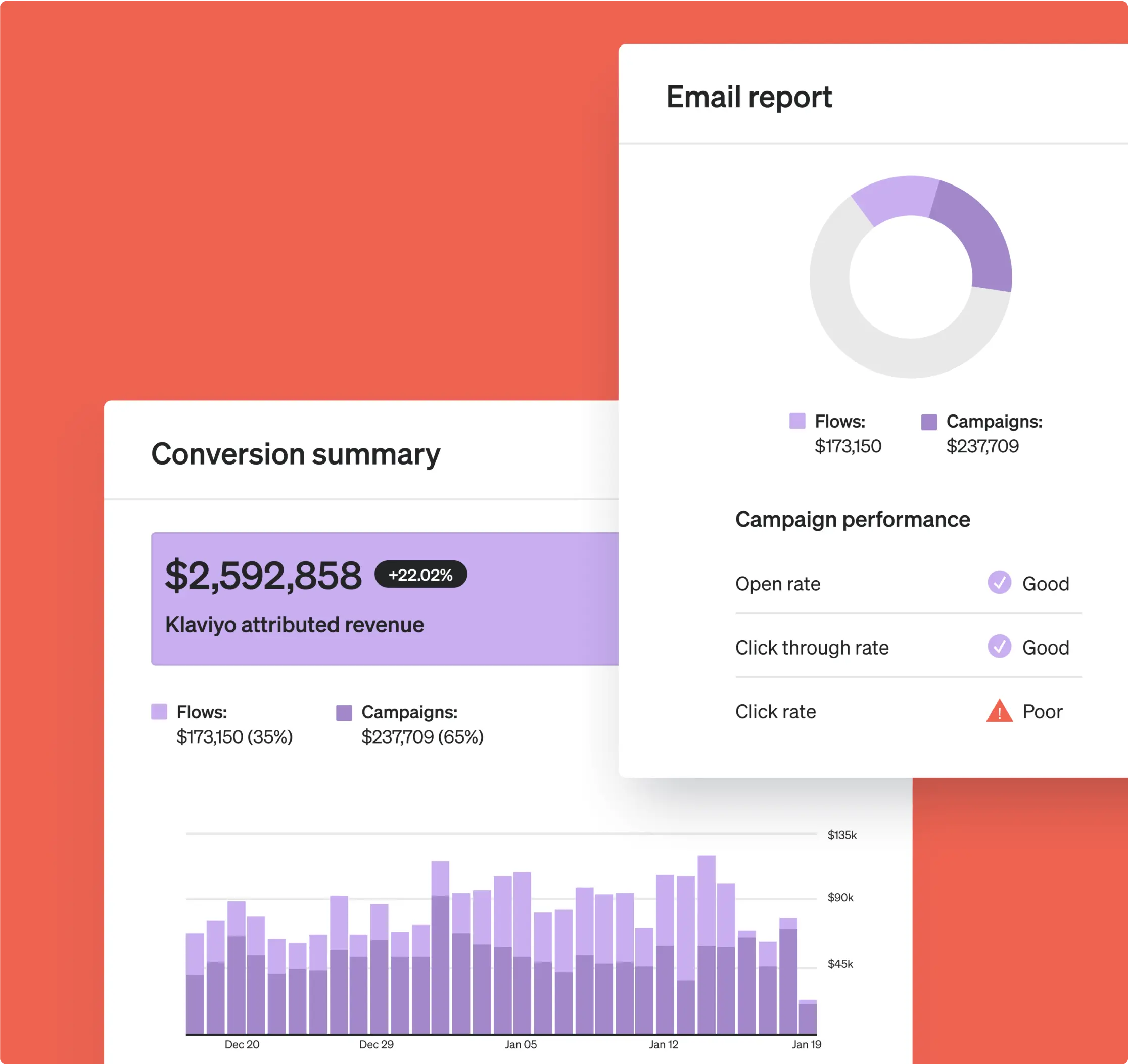 Understand your brand’s performance with all your customer data and detailed reporting under one roof. Klaviyo’s built-in CDP makes your data accessible and actionable like never before. With Klaviyo, you know: