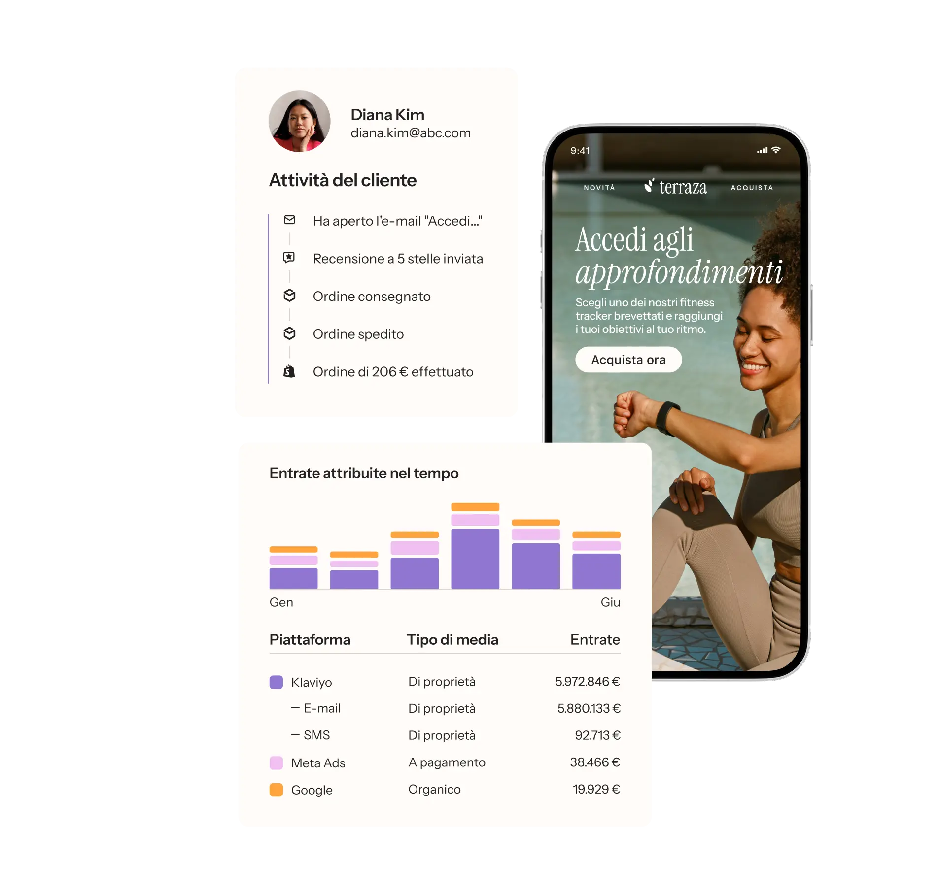 Con Klaviyo, puoi potenziare le tue iniziative di marketing:
