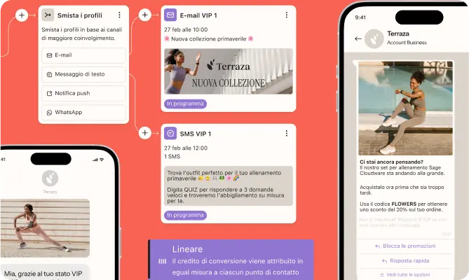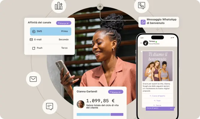 Klaviyo ci dà l’opportunità di automatizzare l’intero percorso del cliente: da quando le persone visitano il sito web, aggiungono qualcosa al carrello e fanno un acquisto, fino alla fase post-vendita, quando il cliente lascia una recensione e ci consiglia ad altre persone.
