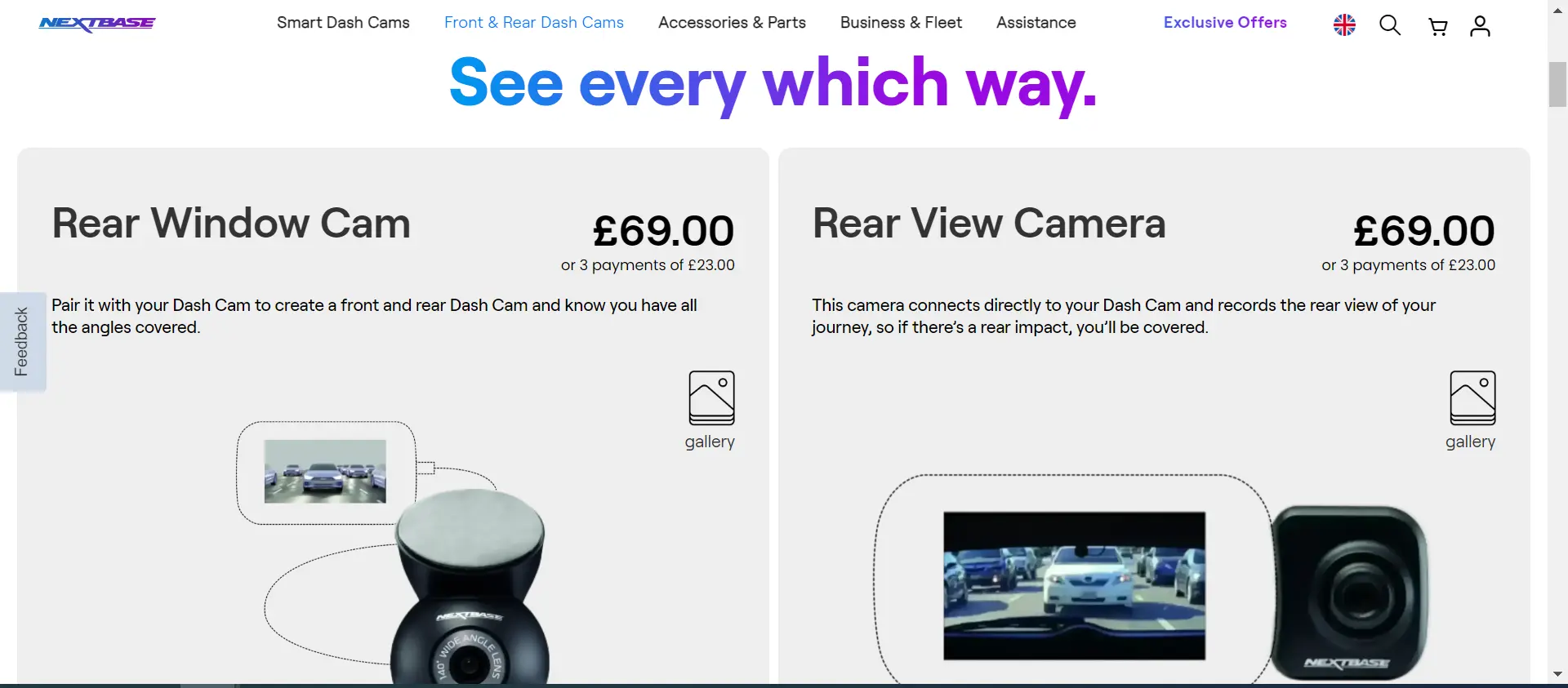 Tramite Shogun, ora Nextbase si rivolge ai clienti esistenti che visitano il sito offrendo consigli personalizzati sui prodotti complementari a quelli già acquistati.