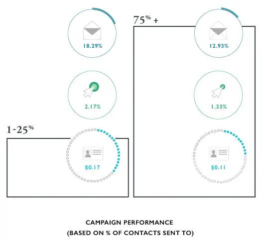 Campaigns sent to a narrow slice of a store’s contacts outperformed campaigns sent to most of the list, providing better open rates, click-through rates, and revenue per recipient: