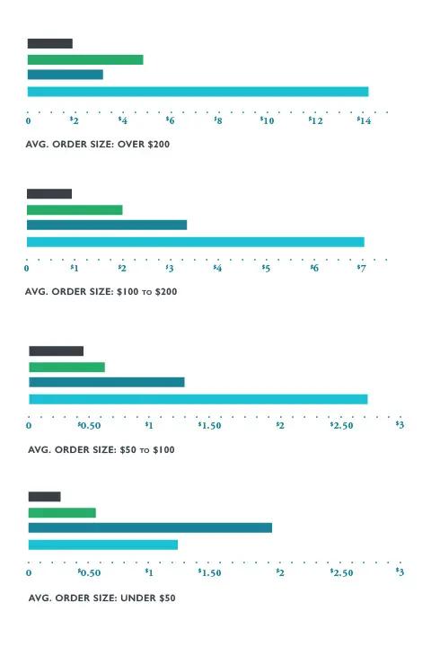 The highest revenue per recipient was found in abandoned cart emails sent by stores with an average order size of over $200: $14.14. Not bad for a set of emails that went out by themselves!