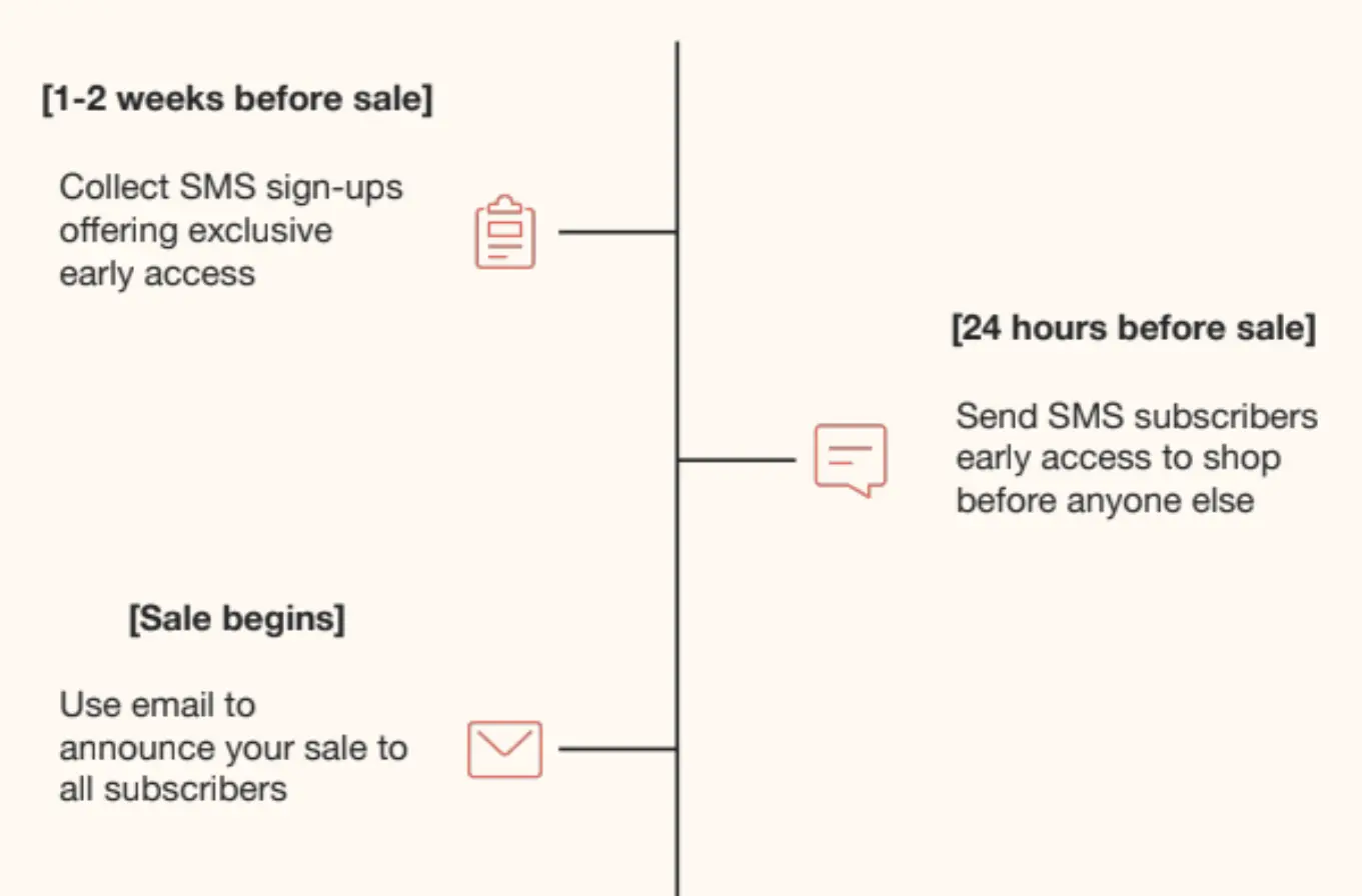 Buban sees this strategy most frequently during bigger sales, like BFCM, with additional texts scattered throughout the campaign.