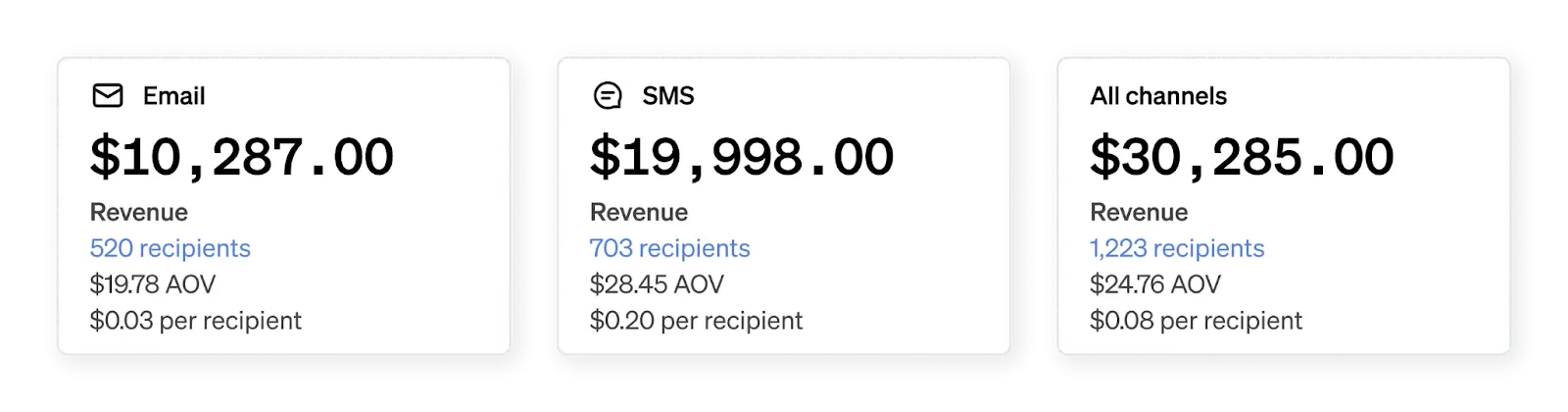 By creating a combined campaign, you’ll also be able to analyze attributed revenue individually by channel, as well as in aggregate for the larger campaign.