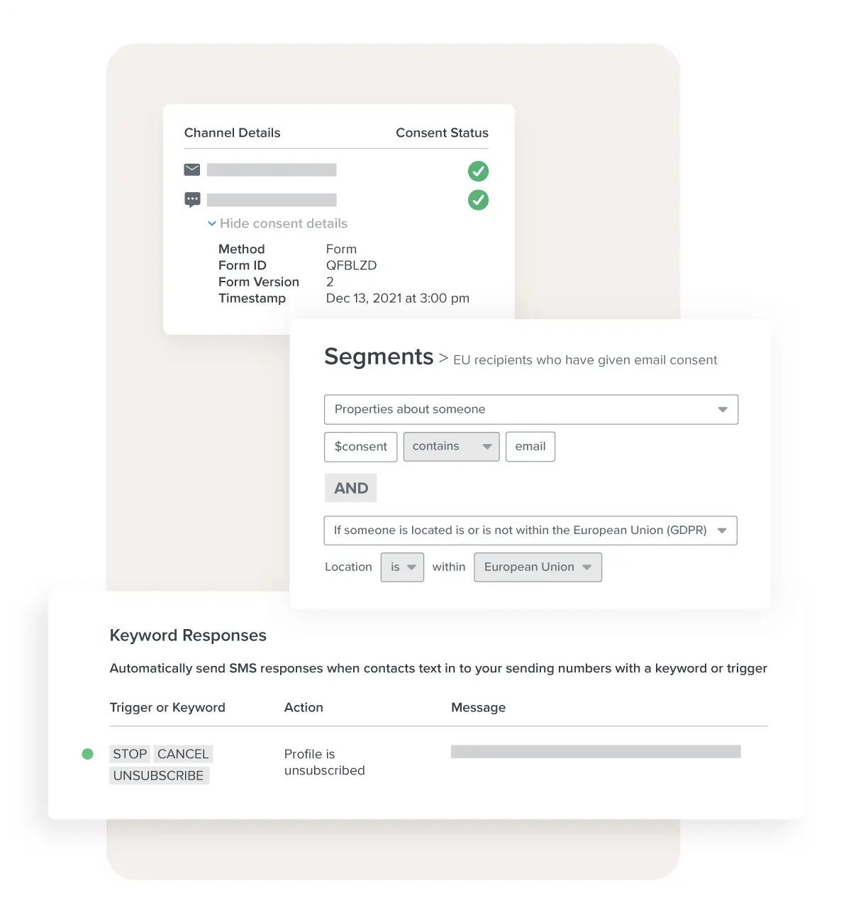 Grow your contact list and streamline your workflow with features that tackle the details for you. Klaviyo’s consent management and compliance tools can help you save time and money, so you can stay focused on delivering excellent customer experiences.