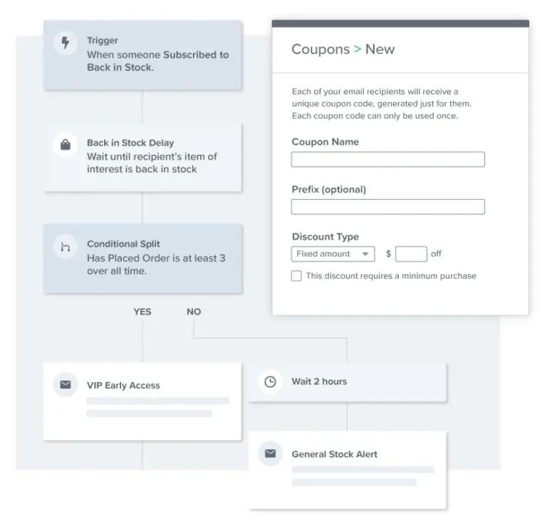 Klaviyo was built with the unique tools ecommerce businesses need to grow. Features like Back in Stock, product recommendations, and unique coupons are built right into the platform to help you drive more revenue.