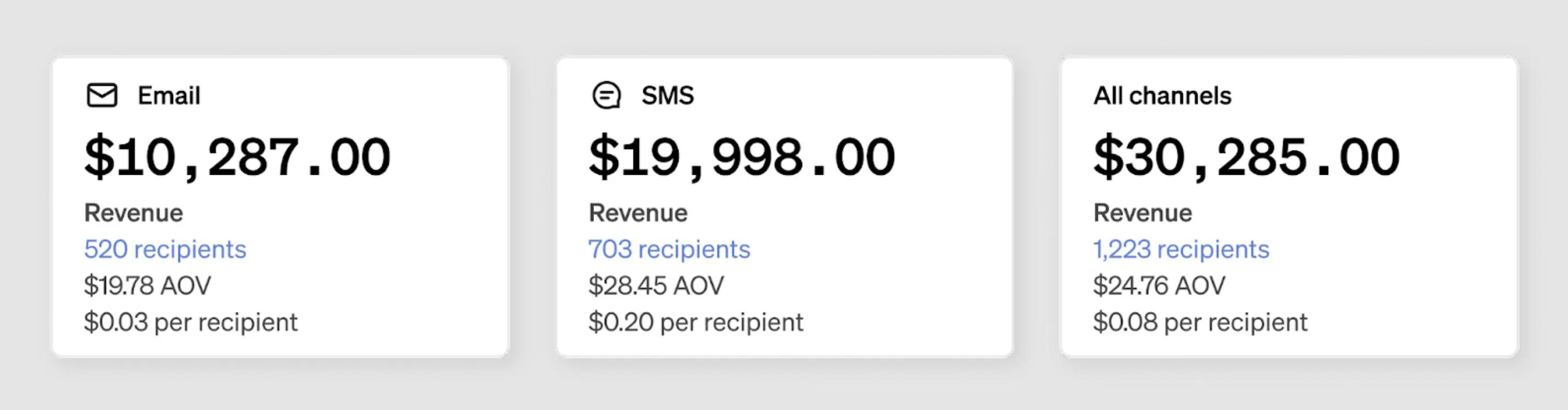 Flows are automations triggered by direct customer actions. Because of the highly relevant nature of flows, they tend to outperform campaigns in both engagement and attributed revenue. Based on thousands of Klaviyo accounts using SMS, we’ve found that SMS messages included in flows tend to yield a higher revenue per recipient than email. Bolster your revenue growth by adding SMS into your flow strategy.