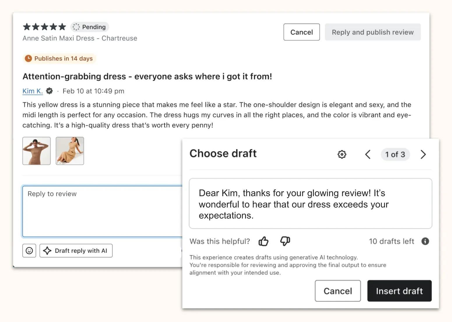 Note: No response is published without your consent. You retain full control over what is shared with customers – you can edit or replace the AI-generated response to align with your brand voice.