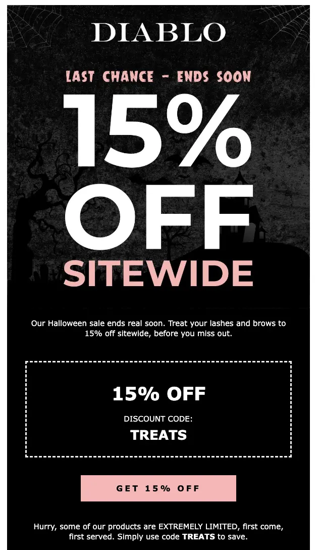 Diablo Cosmetics seizes Halloween as an opportunity to offer a real treat: a big incentive to purchase with a 15% discount on limited .