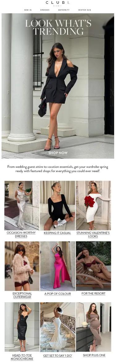 With this email, Club L London uses compelling imagery and clear subheads to highlights its latest range of outfits for the Valentine’s Season.