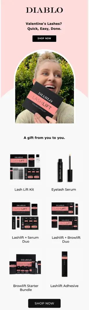 Diablo Cosmetics earned a high click rate with this email challenging their audience to show themselves some self-love. The email contains clear, succinct imagery.