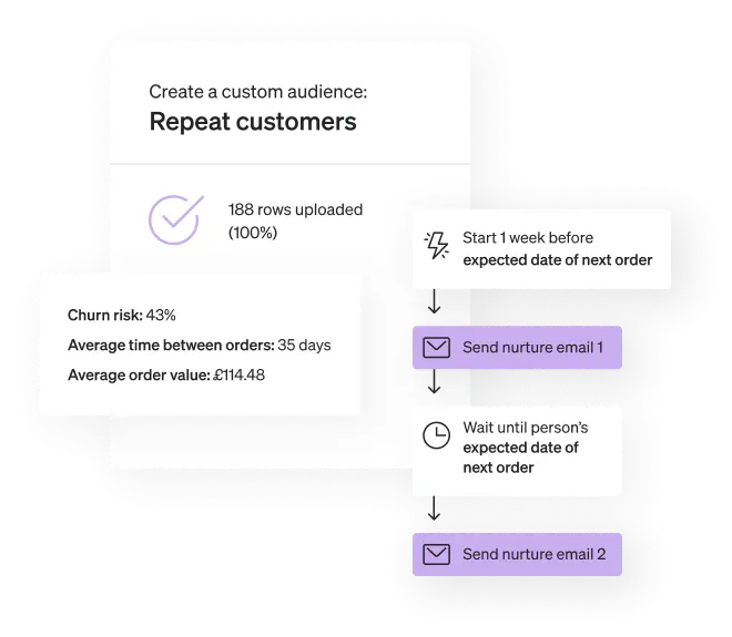 Segment email lists based on behaviour, purchase history, demographics, and more to create targeted campaigns that are more likely to convert.