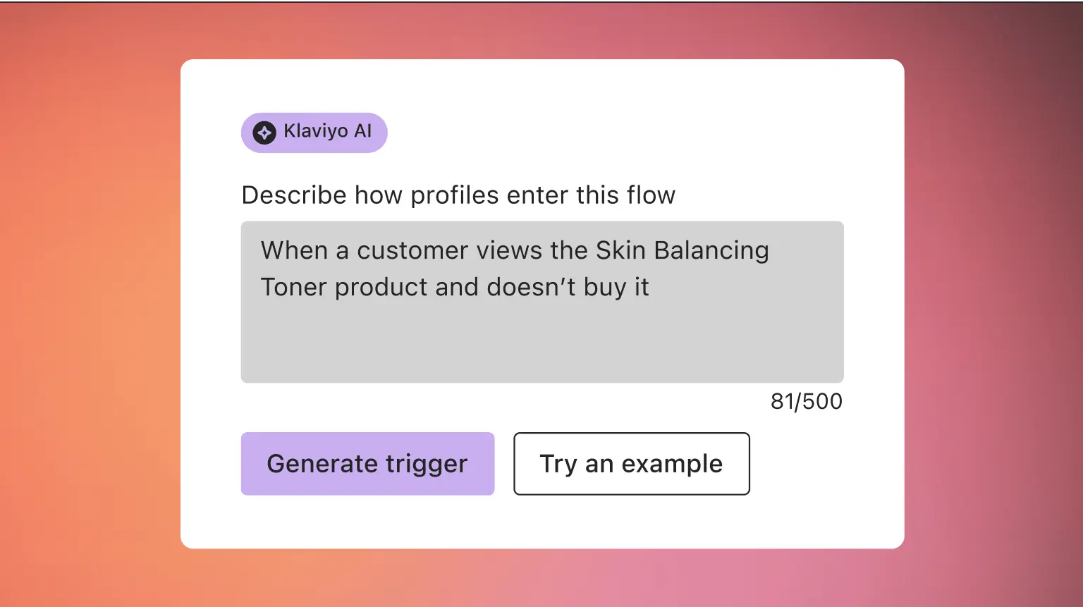 Need a complex flow? Simply type a description and let Klaviyo AI build it out in seconds.