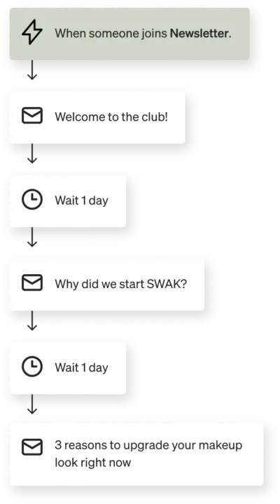 This is the set of automated messages new subscribers receive when they consent to email marketing. A welcome series typically occurs during the awareness or consideration phase of the customer journey. A new subscriber may have never heard of your brand before, or perhaps they’ve become aware of your products and want to learn more about what you offer.